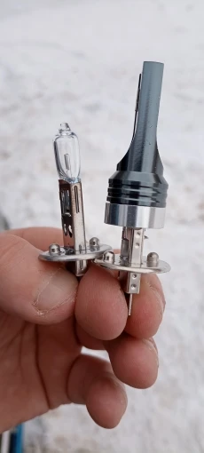 когда заказывал, не было фото лампочек h1, в итоге они не подходят и даже не знаю кому вообще подойдут! лампочка по ширине как и паз, в который вставляется! остаётся просто выкинуть их, деньги на ветер. для сравнения галогенка и эта чудо лампочка, посмотрите и сравните