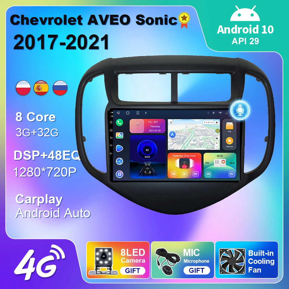 Автомагнитола 2 din для Chevrolet AVEO Sonic 2017-2021, 4G, Wi-Fi, GPS, DVD