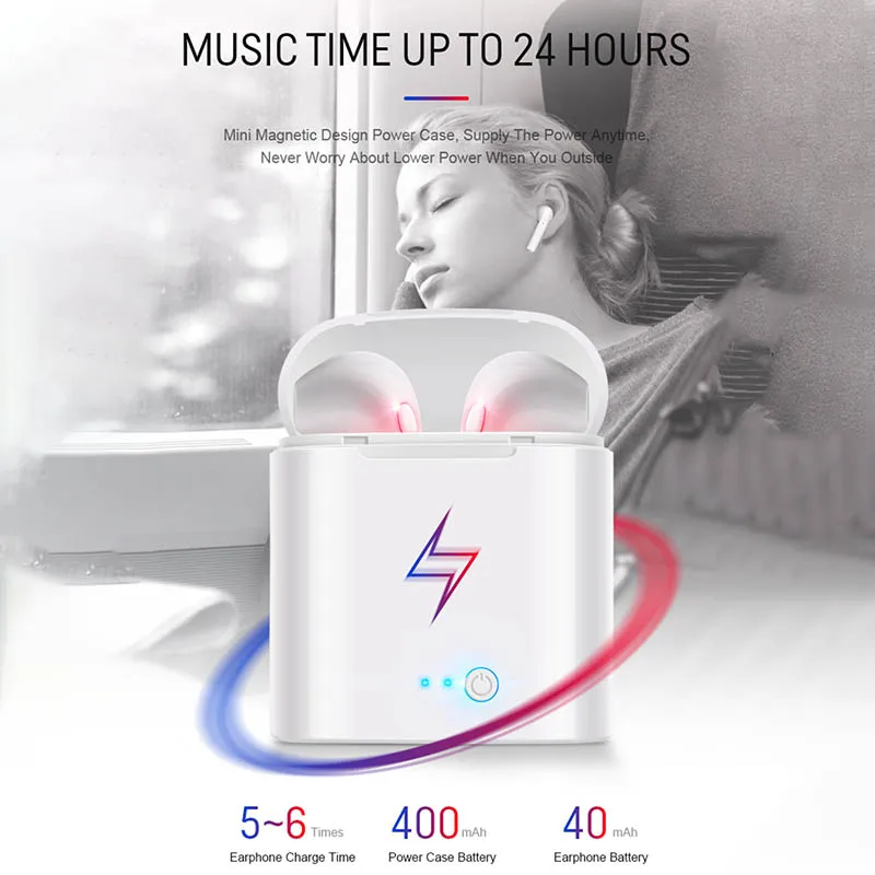 Примечание:Если у вас есть какие-либо вопросы, пожалуйста, свяжитесь со мной, и я помогу вам их решить.Если вы покупаете два или более, вы получите дополнительную скидку 2%!Описание товара:Надежная Совместимость: независимо от бренда мобильного телефона и модели, bluetooth-устройства могут использовать эту гарнитуру.Кабинка для зарядки большой емкости: Может использоваться для хранения наушников для зарядки наушников/мобильный телефон в качестве держателя на мобильный телефон.Умная кнопка: популярная функция управления одной кнопкой, поддержка переключения песен, телефонных звонков и голосовых вызовов.Интеллектуальное снижение уровня шума: Наслаждайтесь hd-эффектами вызова, не подвергая воздействию шумных окружающей среды.Зеленый и охрана окружающей среды: Он изготовлен из нетоксичных и не загрязняющих материалов, и он зеленый и экологически чистый. Это лучший подарок для семьи и друзей.Спецификация:1. Драйвер: 15 мм2. Сопротивление: 32 Ом3. Версия Bluetooth: Bluetooth v5.0 + EDR4. Используемый диапазон Bluetooth: 2,4 ГГц5. Уровень мощности: класс II6. Выходная мощность: 30 мВт7. Расстояние Bluetooth: 10 метров барьер8. Частотная характеристика: 20-20000 Гц9. Диапазон рабочего напряжения: 3,0 V-4,2 V10. Чувствительность микрофона: -42 дБ11. С A2DP / AVRCP высокое качество стерео аудио передача и протокол дистанционного управления12. Мощная Схема снижения уровня шума (активное шумоподавление)13. Переключение между китайским и английским (загрузка не подключается к Bluetooth, нажмите переключатель 2 раза, услышите тон переключатель успешно)14. Время разговора составляет около 2 часов15. Время прослушивания музыки около 2 часов16. Время работы в режиме ожидания составляет около 100 часовПосылка включает в себя:I7s набор наушников/i7 одиночные наушники1 x Зарядное устройство (i7 single no с зарядным устройством)1 х USB кабель для зарядки1 x Руководство пользователя(Примечание: Этот продукт поставляется без упаковки)