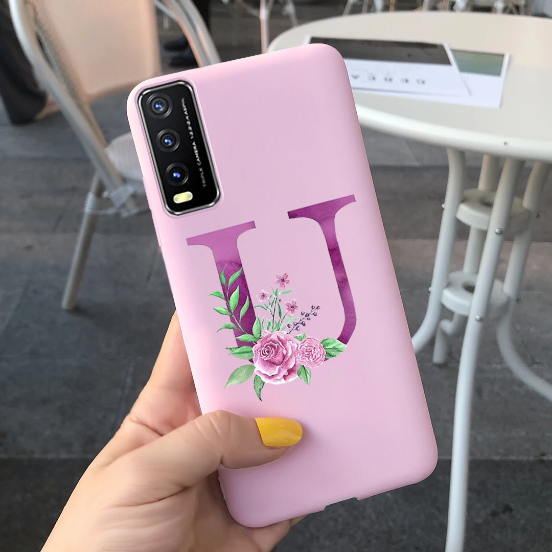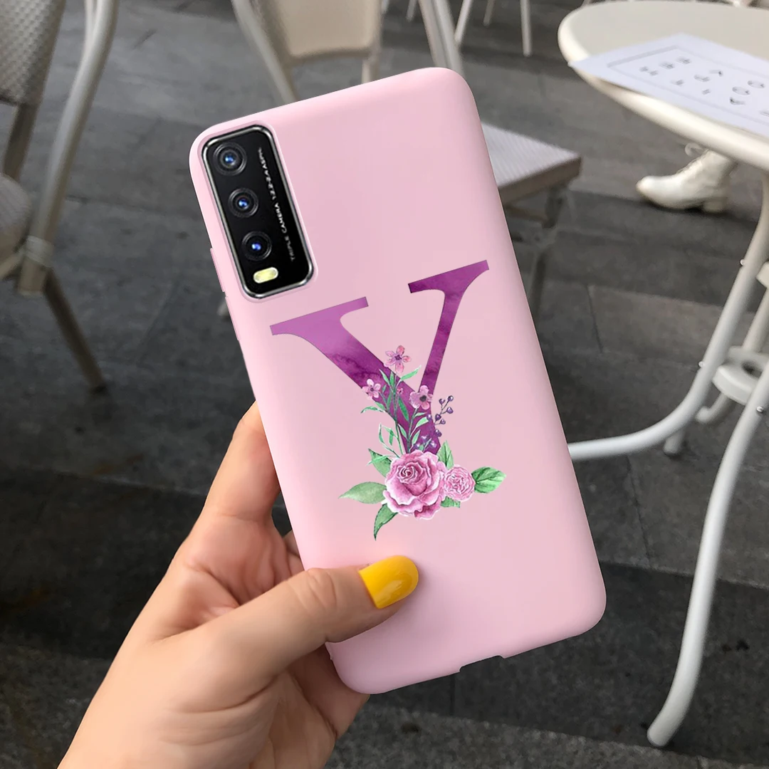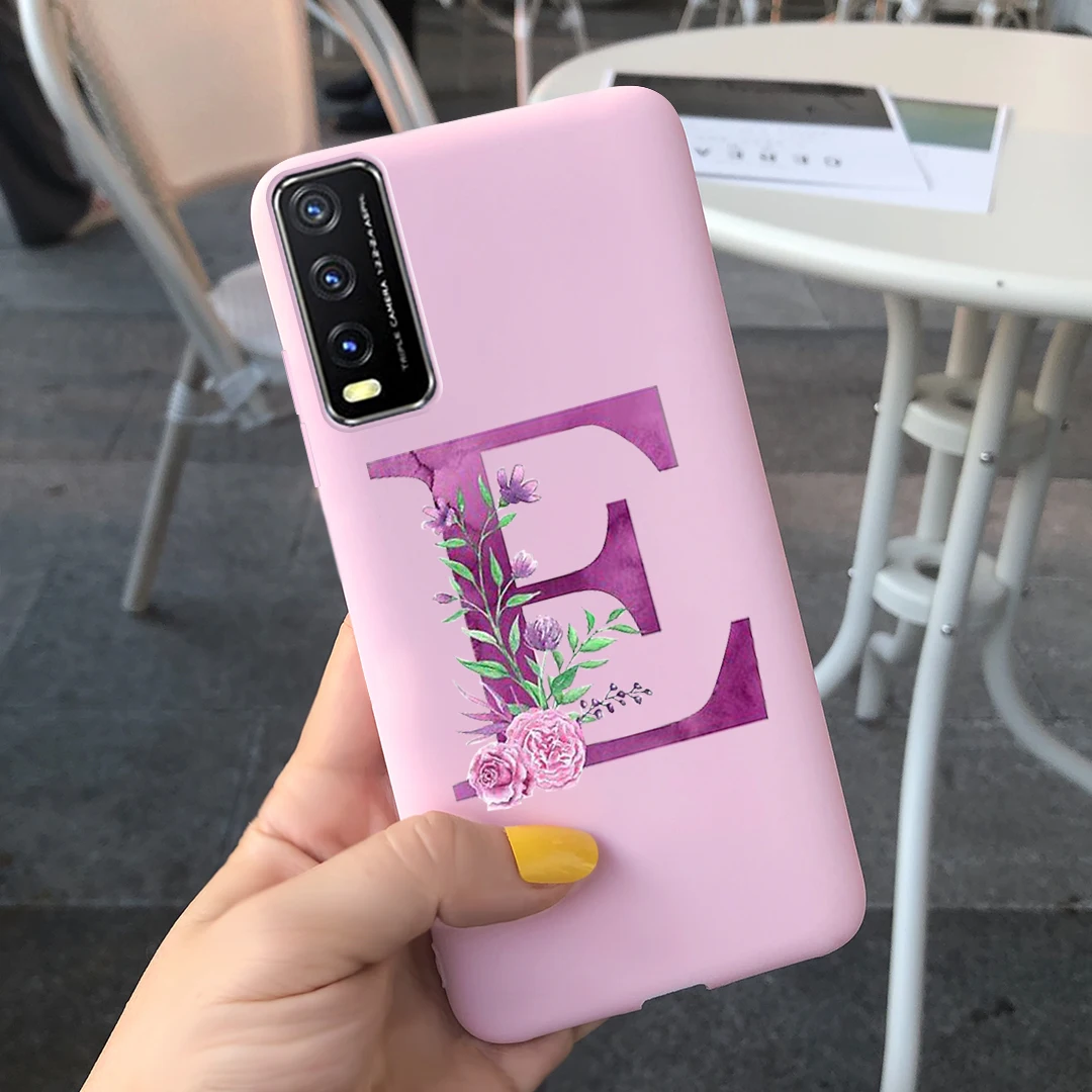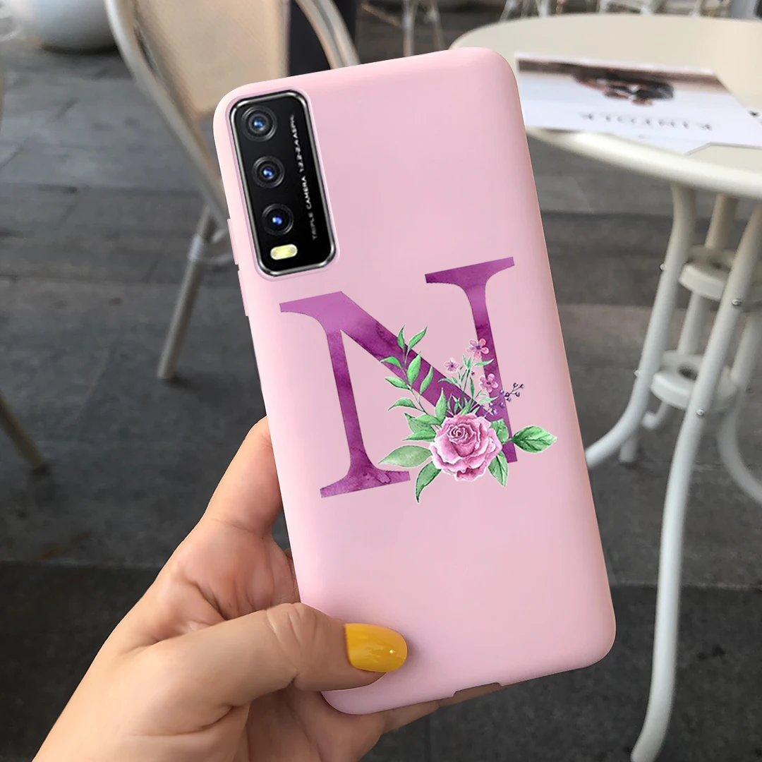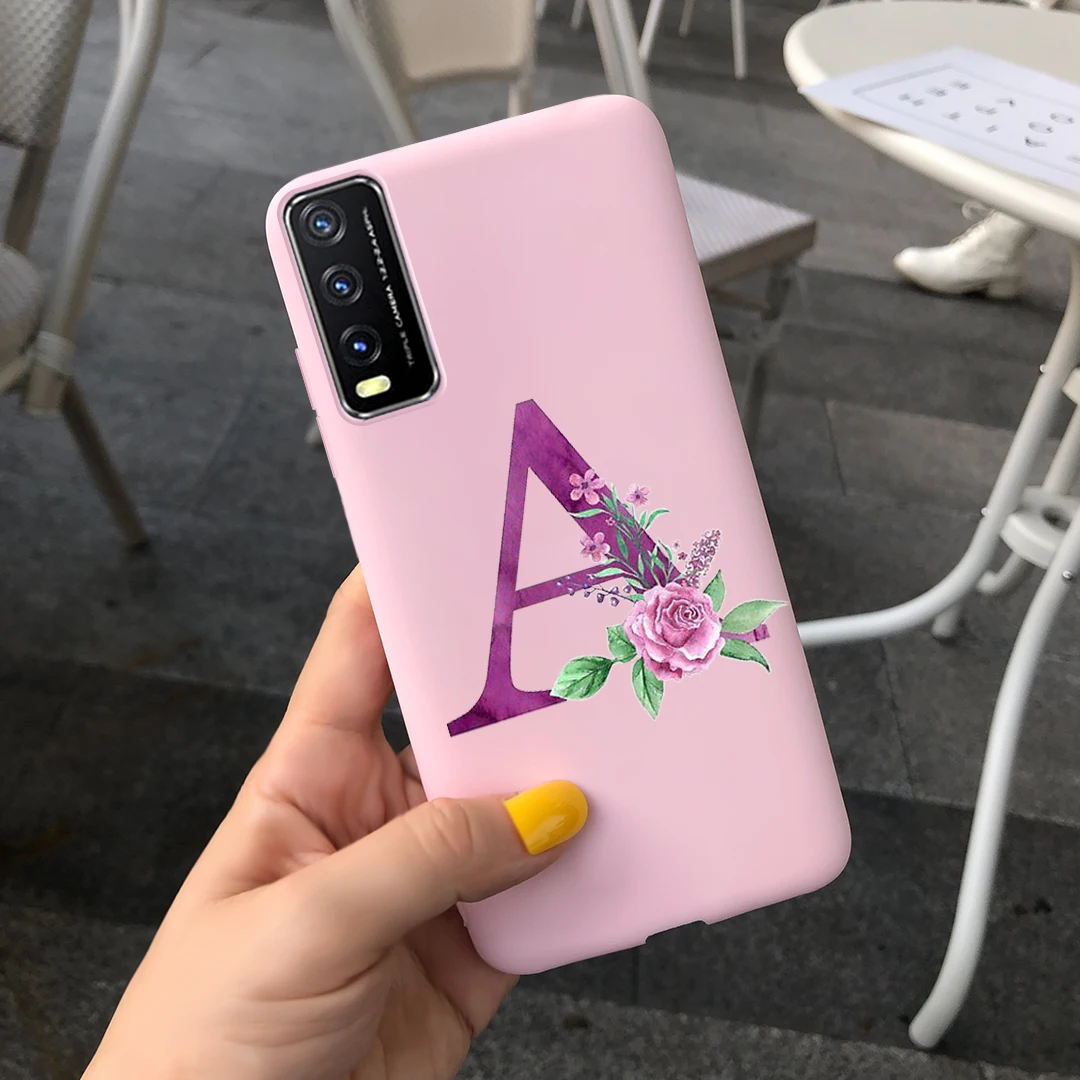 Чехол для телефона Vivo Y20 2021 Y 20 Y20i Y20s Y20G Y20A Y11S Y12S (2021), чехол из ТПУ с милыми буквами и цветком, чехол-бампер