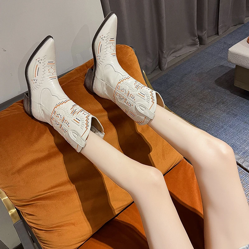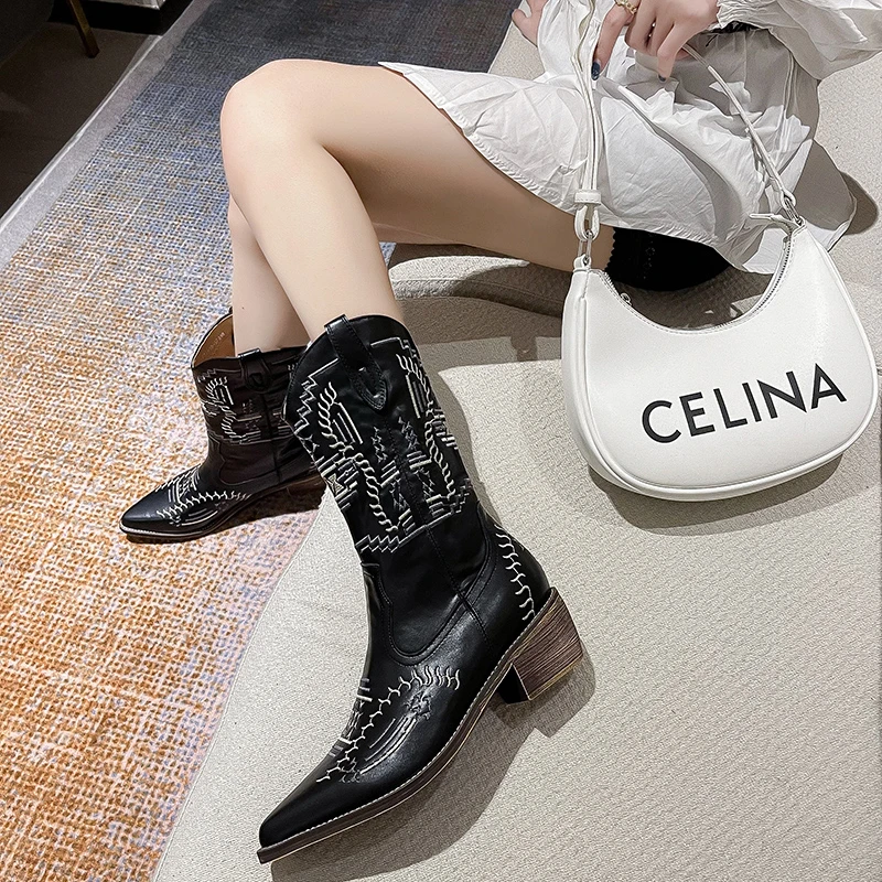 Новые брендовые ковбойские сапоги с вышивкой в западном стиле для ж...