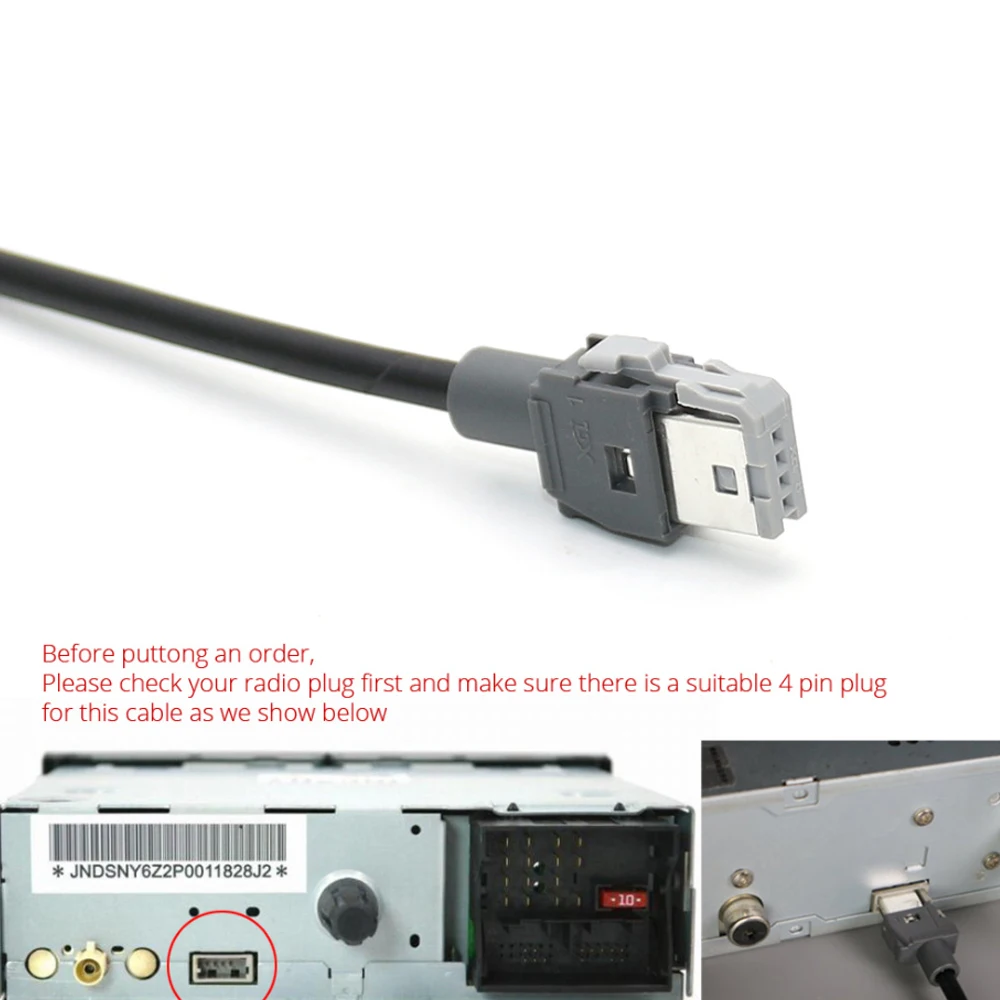 Прежде чем размещать заказ, пожалуйста, сначала проверьте свой радио-разъем и убедитесь, что есть подходящий 4-контактный разъем для этого кабеля, как мы показываем ниже.