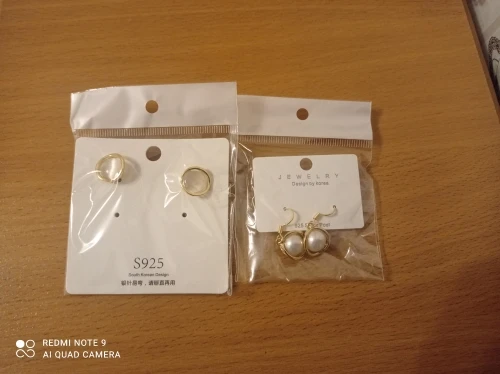 Шли очень долго, пришли позже обещанного срока. Качество упаковки хорошее-товар доехал целым. Серьги выглядят так же как на фото в магазине. Длину висюлек(типо жемчуг)можно регулировать как показано на моих фото, для меня это + т.к. моя шея достаточно короткая, а серьги длинные. Ношу их больше часа уши не болят, хотя обычно аллергия проявляется быстро(в течение 20 минут). Пока поношу подольше, если аллергия проявится, я дополню отзыв. Пока качество соответствует описанию.
