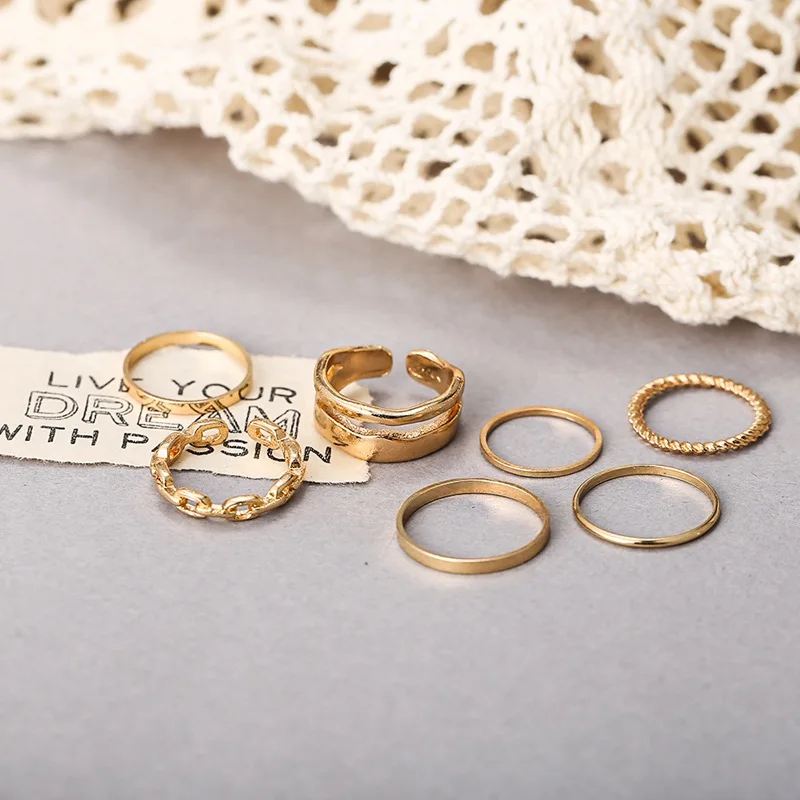 Женский комплект колец в стиле панк, Набор Колец золотого цвета в б...
