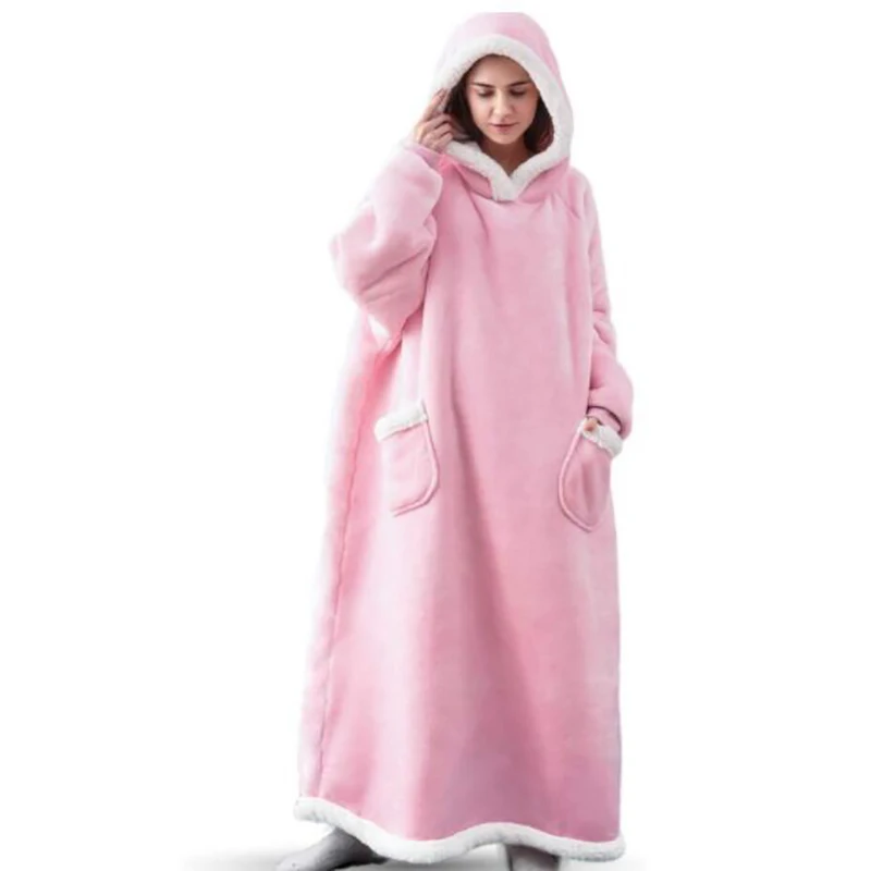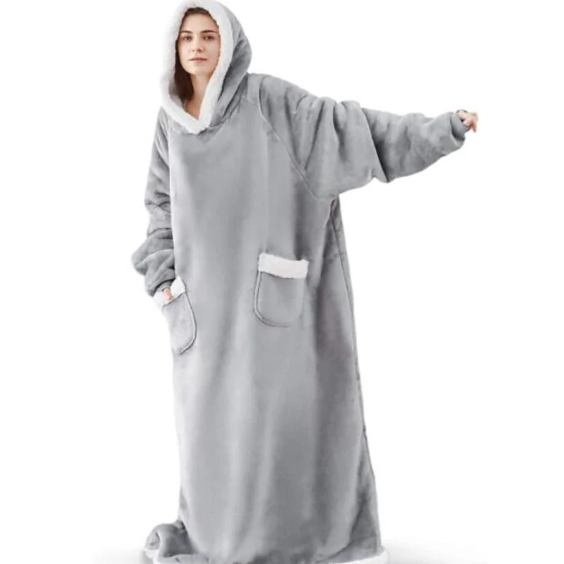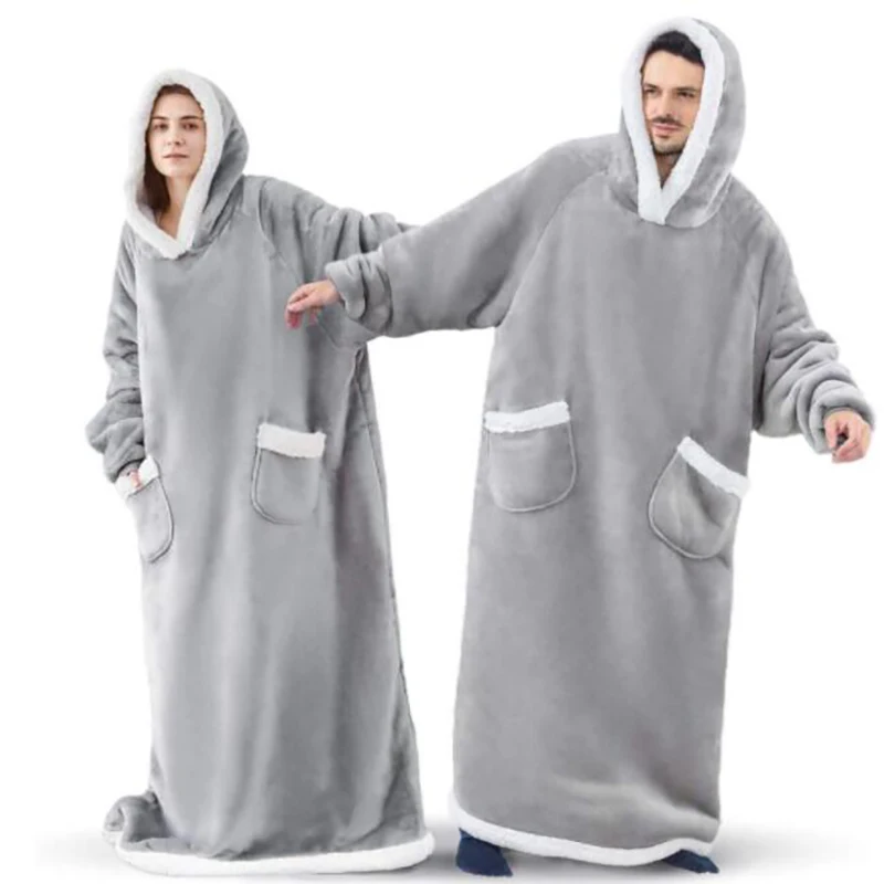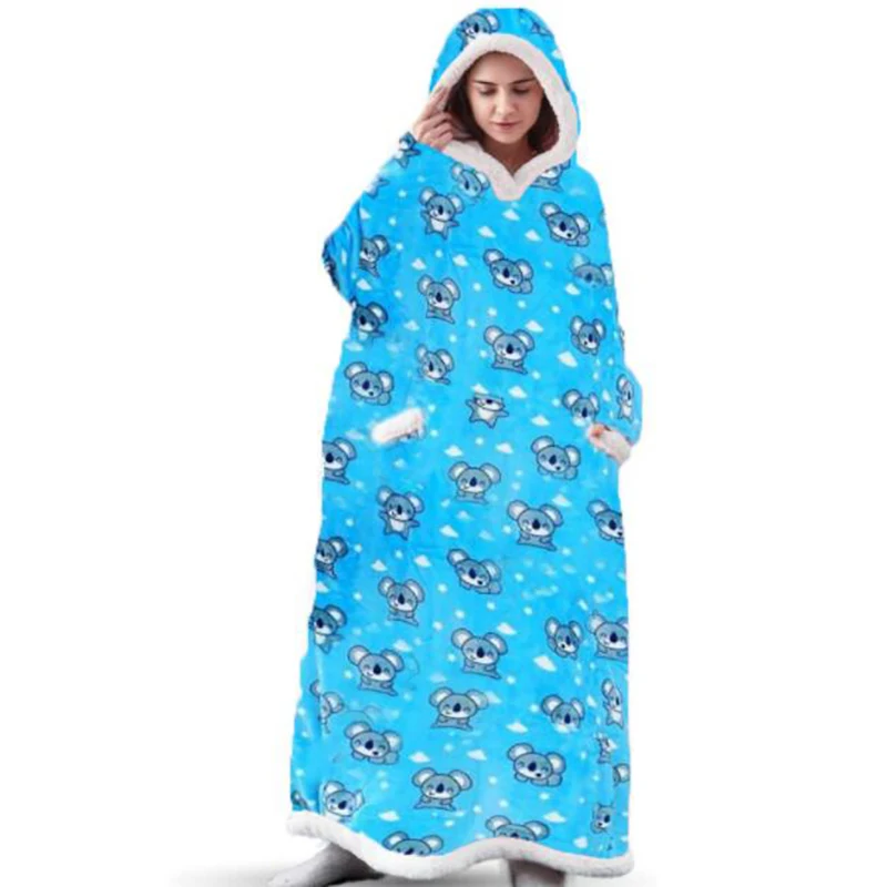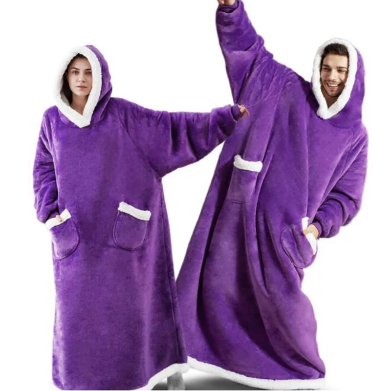 Супер Длинное фланелевое одеяло с рукавами, Зимние толстовки с капюшоном, Толстовка для женщин и мужчин, пуловер из флиса, Гигантское Одеяло для телевизора, одеяло большого размера