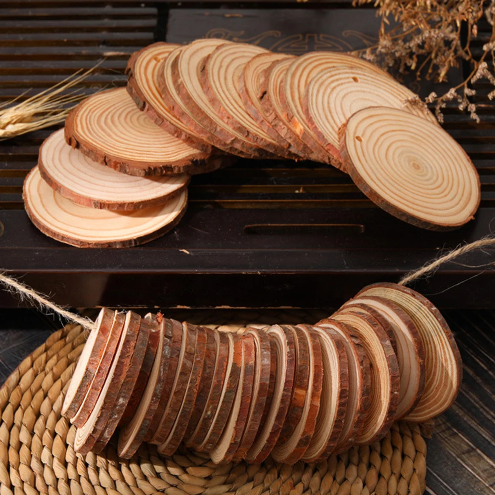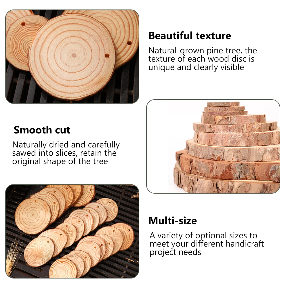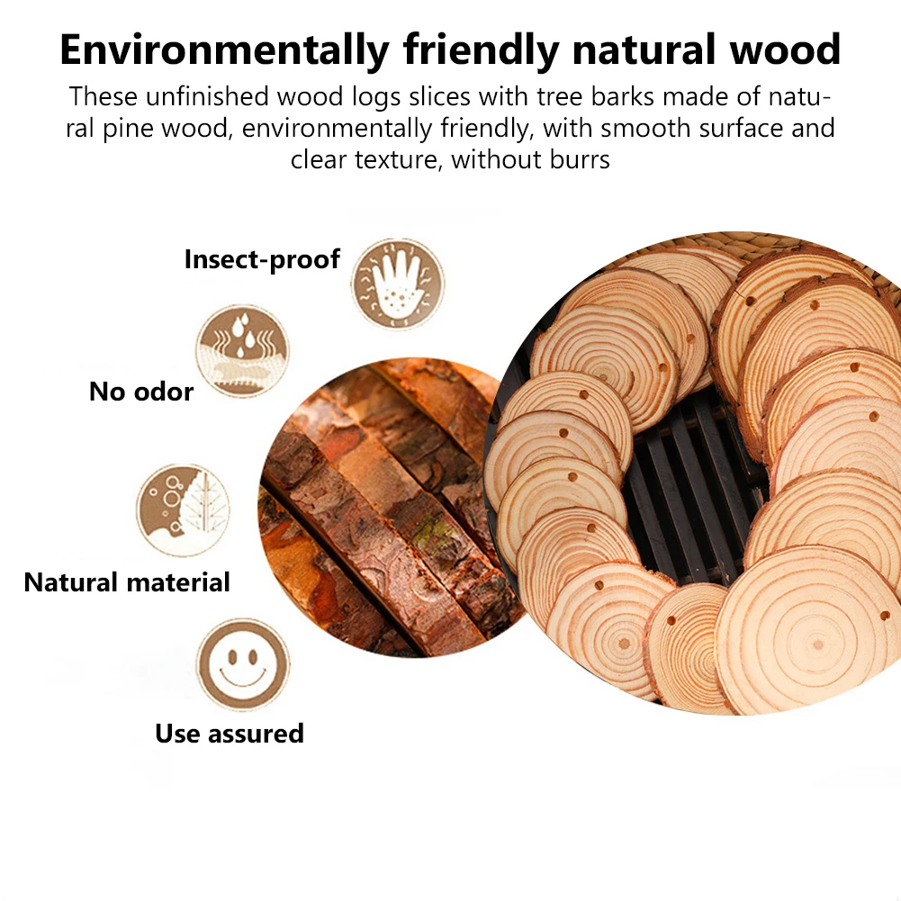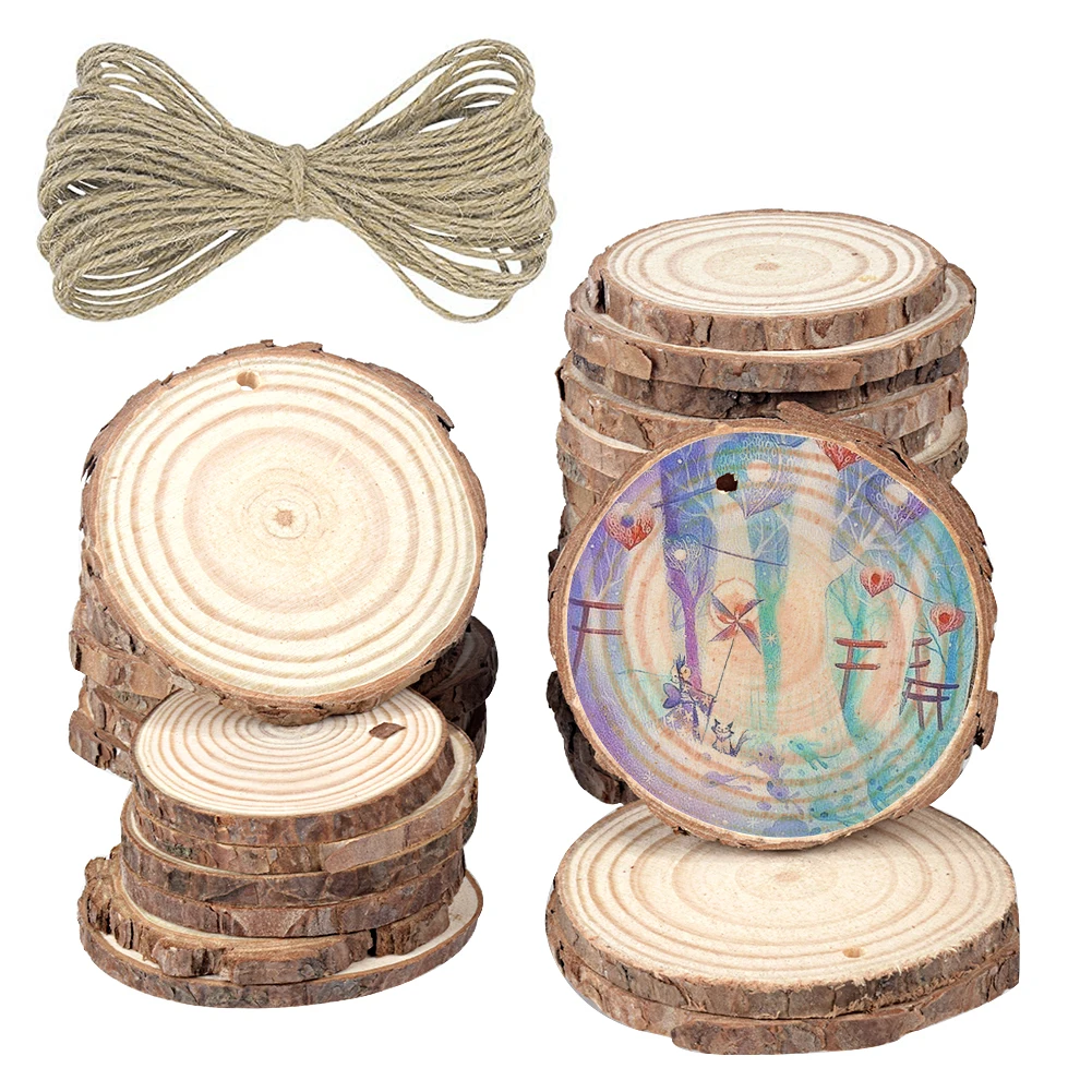 В комплект входит натуральный шпагат. Каждый кусок дерева предварительно просверлен с небольшим отверстием и рулоном джутовой веревки 36 футов для изготовления украшений, подвесного декора или гирлянды.