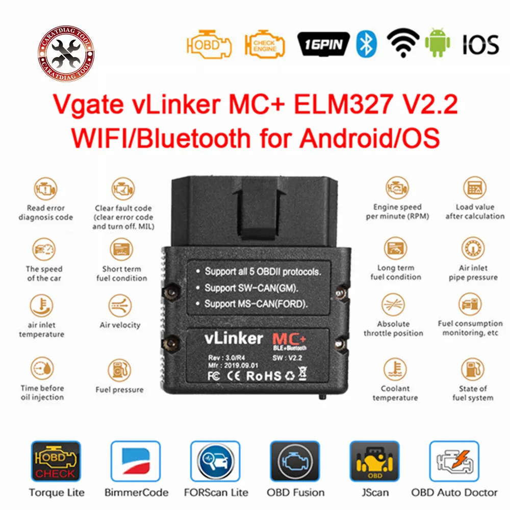 2020 Новинка Vgate vLinker MC + ELM327 V2.2 Bluetooth 4.0 WIFI Fors...