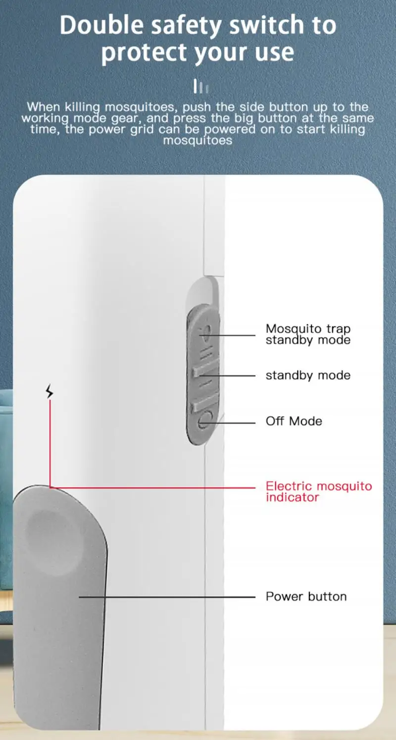 【Электрическая лампа и ракетка 2 в 1 】 последняя электрическая ловушка для комаров имеет 2 режима уничтожения комаров. Настройте электрическая ловушка для комаров на ON1, вы можете вручную использовать комаров в любом уголке. Поверните выключатель питания Электрическая ловушка для комаров в положение ON2, затем поместите его в опору для работы в качестве электрического насекомого-убийцы. Как только комаров и других летающих насекомых привлекут фиолетовый светильник и прикоснитесь к электрической ваттере, она будет немедленно убита.