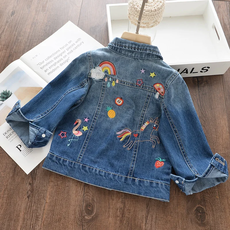 Куртка джинсовая Детская осенняя с единорогом и длинным рукавом, 2020