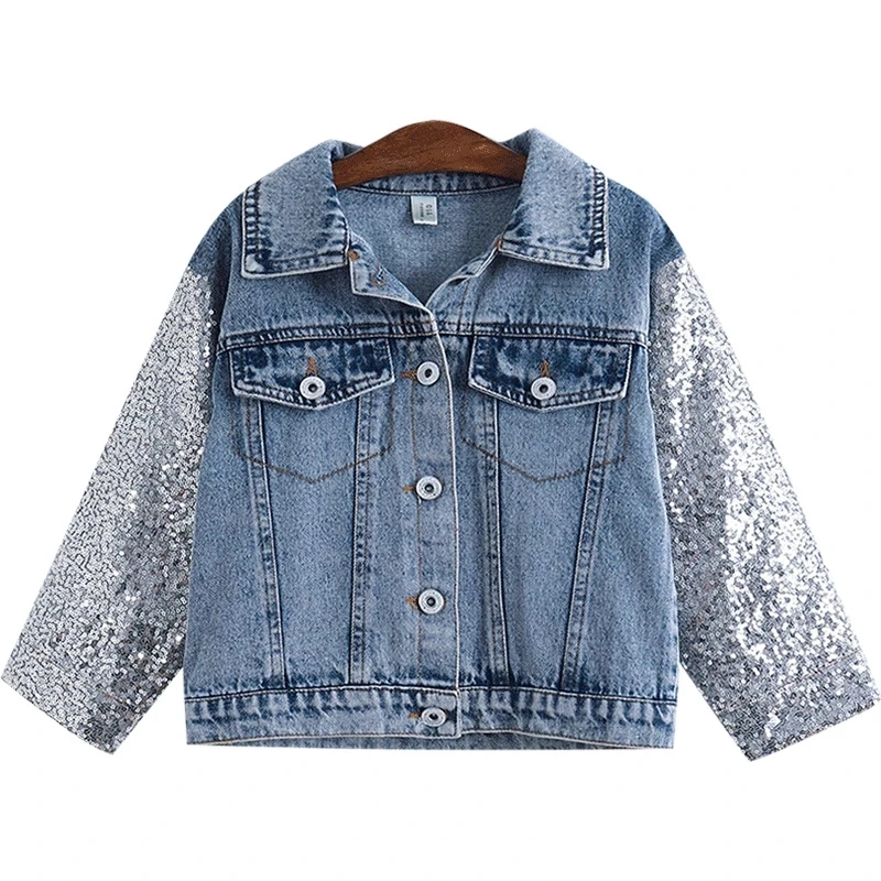 Детская джинсовая куртка с блестками, модная детская одежда для девочек, осенняя одежда для маленьких девочек, верхняя одежда, джинсовые куртки с милым единорогом