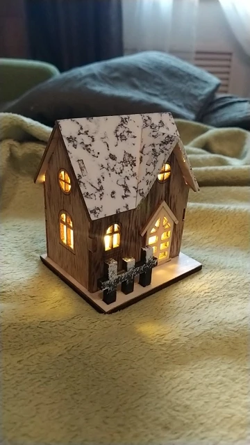 Описание полное, НО заказ шел с начала ноября по середину января. Домик заказывала для декора на н.г, но увы!!! Доставка очень расстроила.