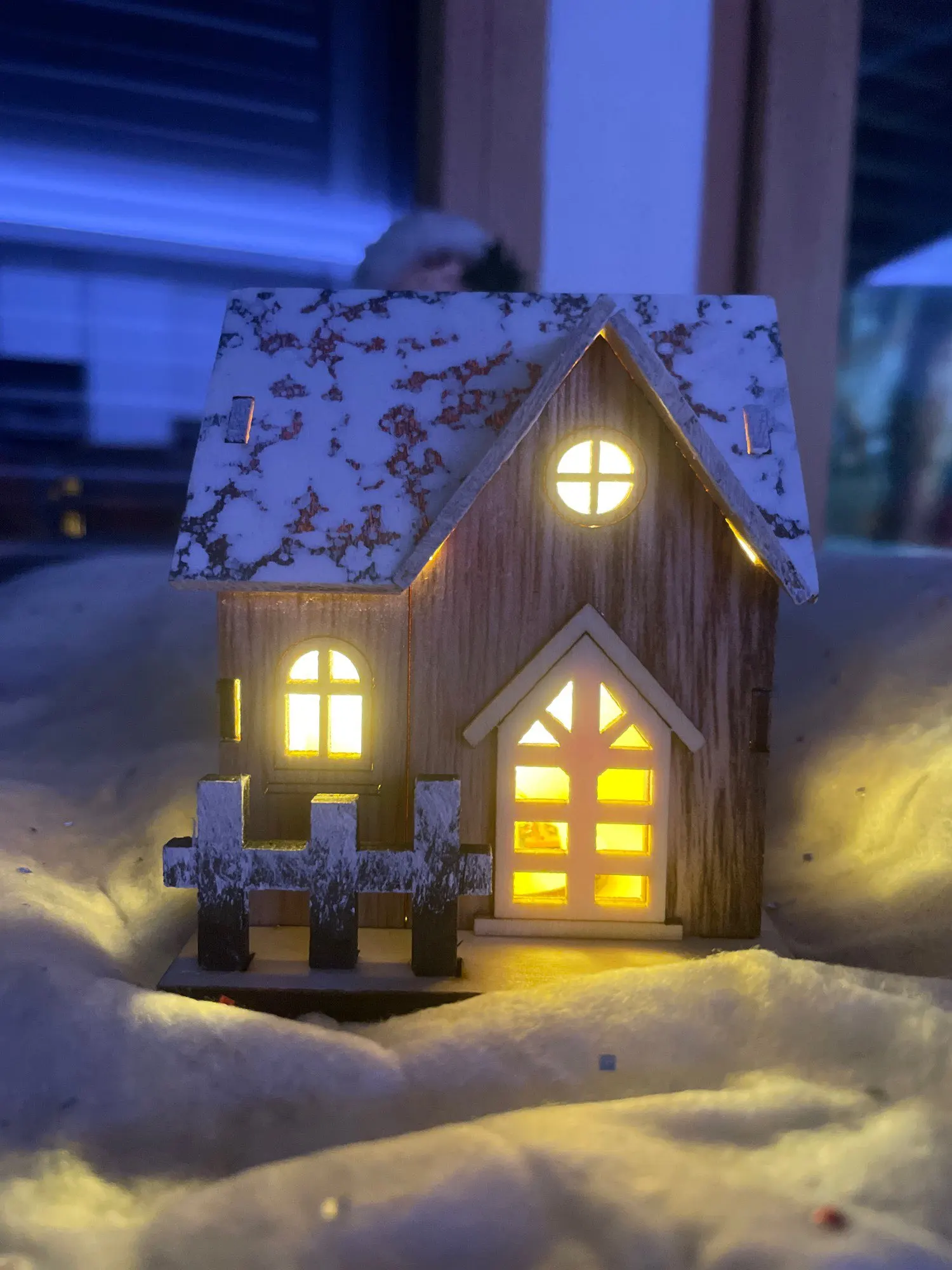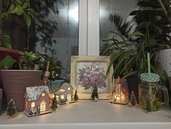 Домики чудесные. Я ожидала, правда, что они будут чуть побольше. Приехали за месяц, все целое. Упакованы были в пупырку и в почтовый пакет, тем не менее, ничего не сломалось. Все светится, очень аккуратные, симпатичные домики. Заказала еще на подарки