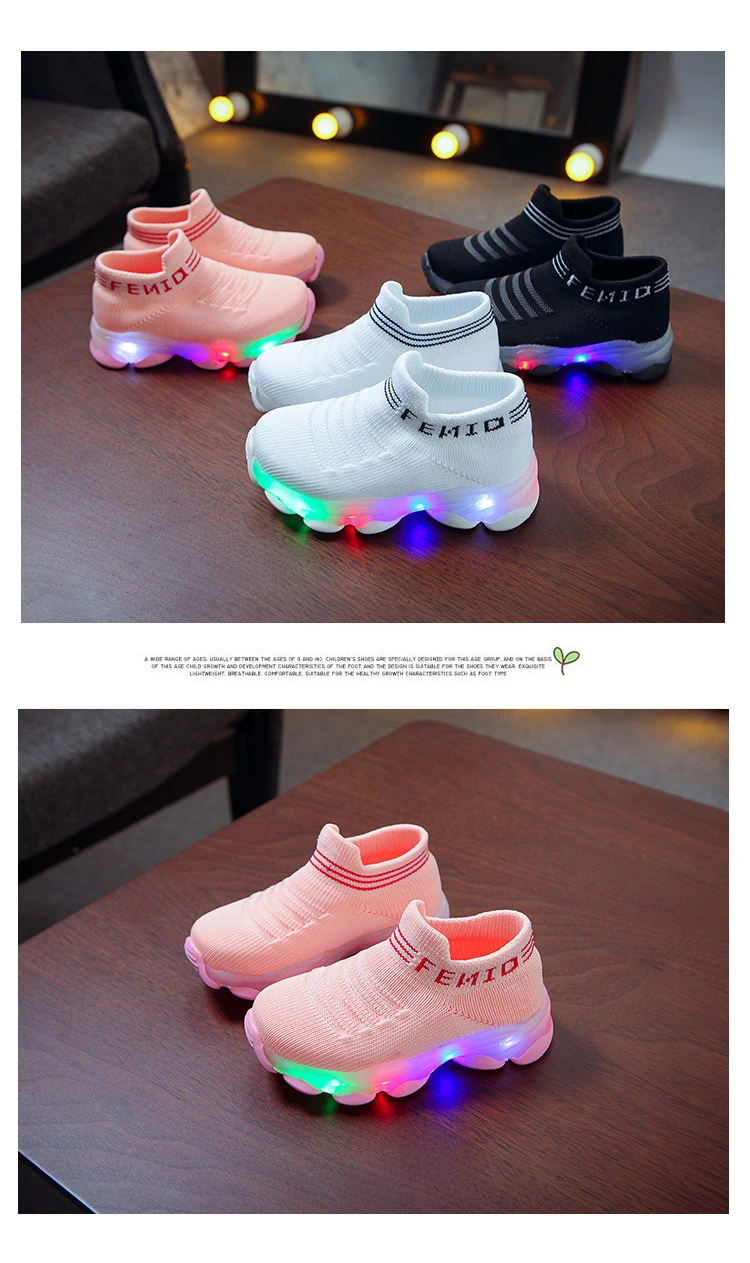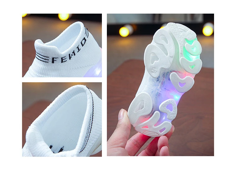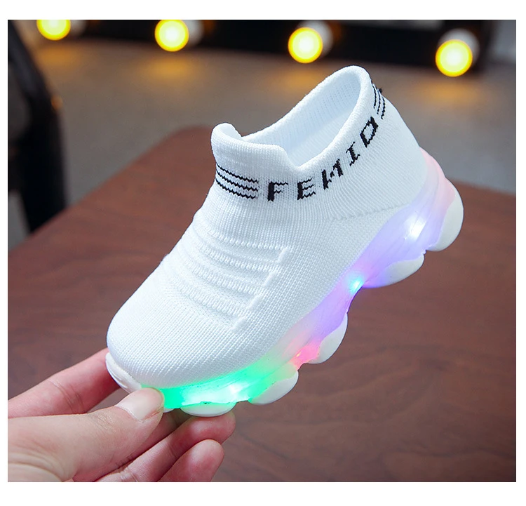 Детские кроссовки со светодиодной подсветкой, сетчатые носки с надп...