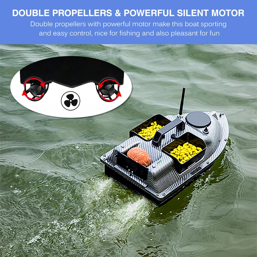 Особенности:Функция GPS помогает установить 4 произвольных точки позиционирования, и лодка может быть вперед и назад на основе точки, которую вы устанавливаете.При обнаружении потери сигнала или низкого заряда батареи лодка автоматически вернется в исходное положение через 15 секунд. Не беспокойтесь о потере.ЖК-дисплей пульта будет отображать несколько данных для вашего, таких как питание батареи, расстояние, компас, положение и светильник.3 контейнера для наживки с около 4.4lb несущей способностью для большего количества наживок.Беспроводное управление и Круизный переключатель с фиксированной скоростью позволяют выпустить приманку далеко. (Дистанционный диапазон: 500 метров/540 ярдов)Двойные двигатели и двойные пропеллеры делают лодку легкой в спорте и кролировании.1 передние белые огни и 2 задние синие ночные огни для ночной рыбалки и кормления.Лодка-приманка питается от аккумуляторной батареи (в комплекте). Съемный аккумулятор позволяет легко заряжать отдельно без лодки.Обтекаемый корпус уменьшает Водонепроницаемость и 6-7 уровней устойчивость к волнам.Пульт дистанционного управления питается от 4 батареек AA (в комплекте). Спецификация:Функция: без GPS/с GPS (опционально)Аккумулятор лодки-приманки: 5200 мАч/12000 мАч (опционально)Время работы: прибл. 3 ч/5 чВремя заказа: ≥ 10 часов/≥ 14 часовМатериал: АБС-пластикНесущая способность: кг/2 кг/4,4 фунтов лёгкий нейлоновый тросДистанционный диапазон: 500 м/540 ярдовПульт дистанционного управления: 4 батарейки типа АА (в комплекте)Размер лодки: 50*25*17 см/19,7*9,8*6,7 дюймовВес: прибл. 1,7 кг/3,7 фунтовРазмер посылка: 56*32*25 см/22,0*12,6*9,8 дюймовВес посылка: прибл. 2,58-2,82 кг/5,7-6,2 фунтов лёгкий нейлоновый трос Посылка:1 * Лодка-приманка1 * батарея лодки приманки1 * пульт дистанционного управления4 * батарейки AA (для дистанционного управления)1 * антенна1 * Руководство пользователя1 * зарядное устройство2 * Запасные пропеллеры Примечание:1. Цвет товара, отображаемый на фотографиях, может немного отличаться на мониторе вашего компьютера, так как мониторы. Спасибо за понимание.2. Контейнер для наживки влево и вправо без функции самостоятельного возврата, вы должны вытянуть его назад руками после освобождения. Но задний контейнер для наживки возвращается обратно с помощью пульта дистанционного управления.3. Больше работы с пультом дистанционного управления, пожалуйста, обратитесь к руководству пользователя.