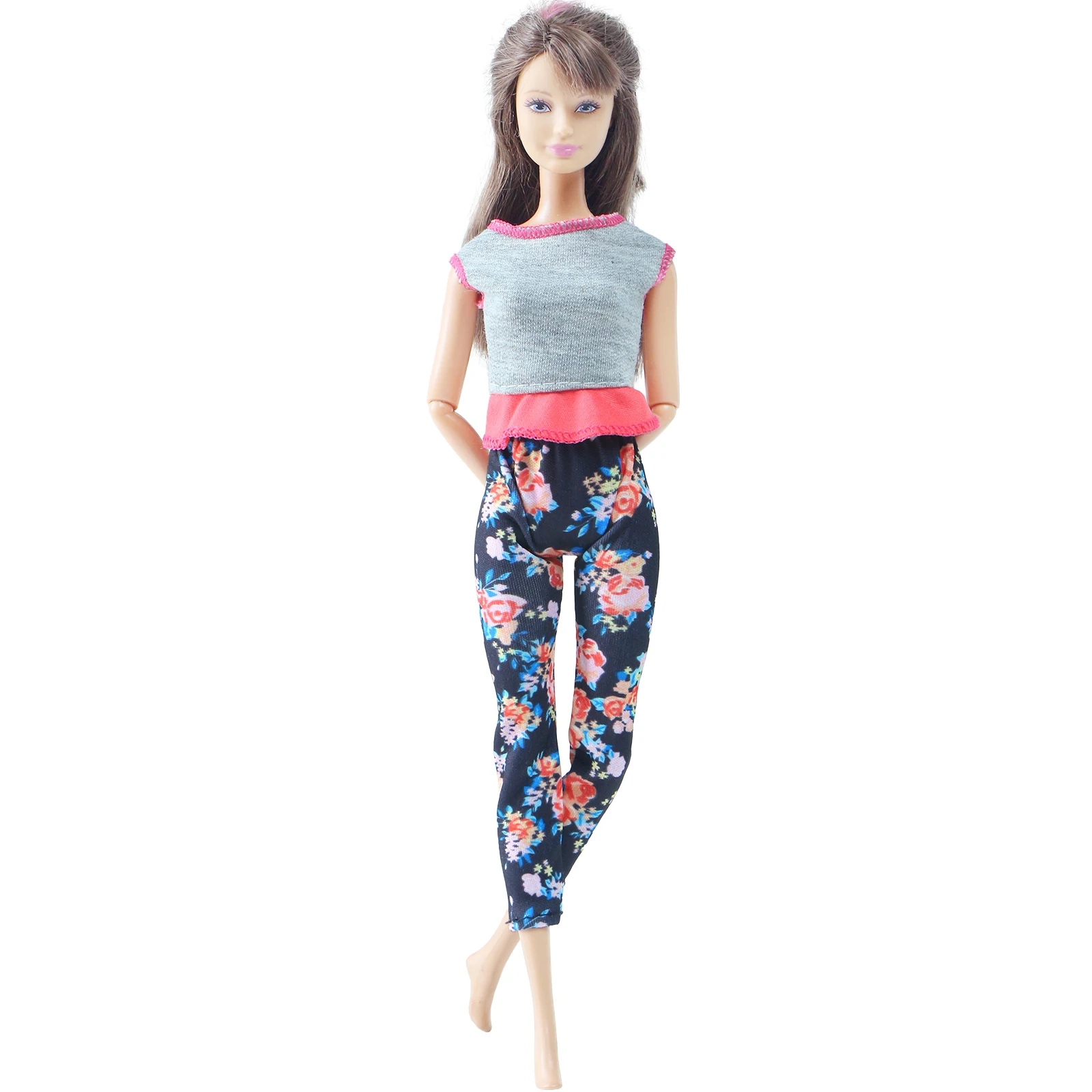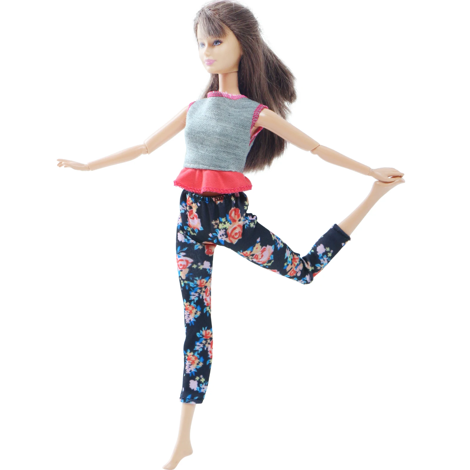 1 шт., Экипировка BJDBUS для кукол, йоги, жилет, цветочный узор, брюки, штаны, спортивная одежда для куклы Барби, детская повседневная одежда, аксессуары, игрушки