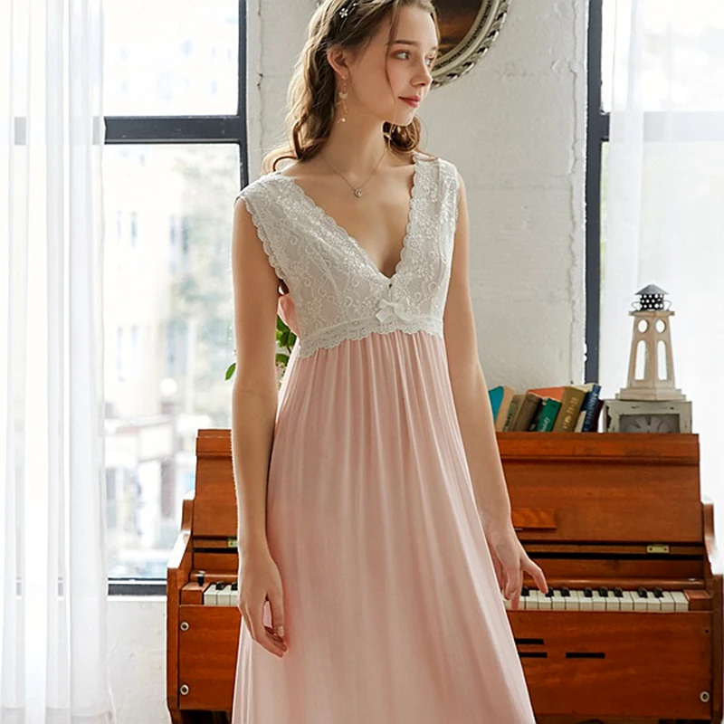 Длинная летняя винтажная ночная рубашка кружевная пикантная Женская одежда для сна Женская неглиже Розовая белая Элегантная ночная рубашка без рукавов