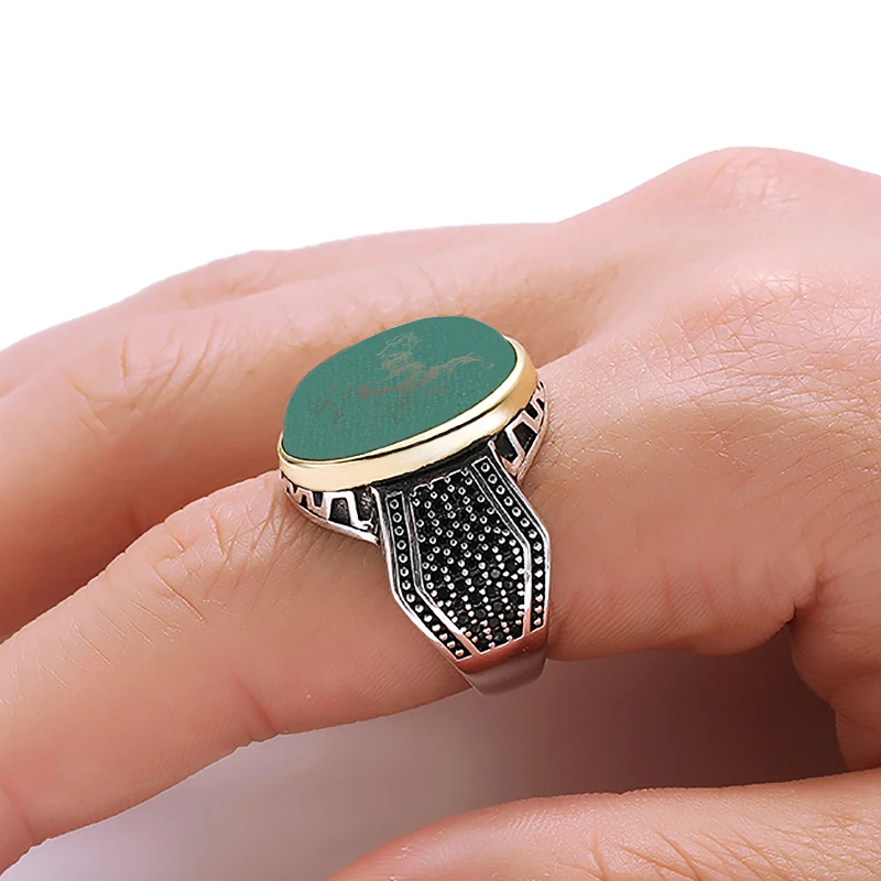 Винтажное высококачественное черное циркониевое металлическое кольцо зеленое овальное кольцо с камнем мужское панк-кольцо