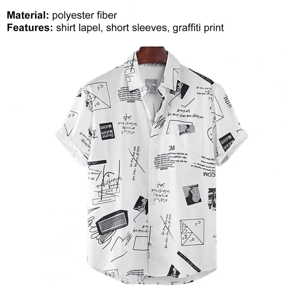 Женская летняя популярная пляжная рубашка с принтом граффити, Мужская однобортная Гавайская искусственная кожа с короткими рукавами и лацканами, большой размер 2019