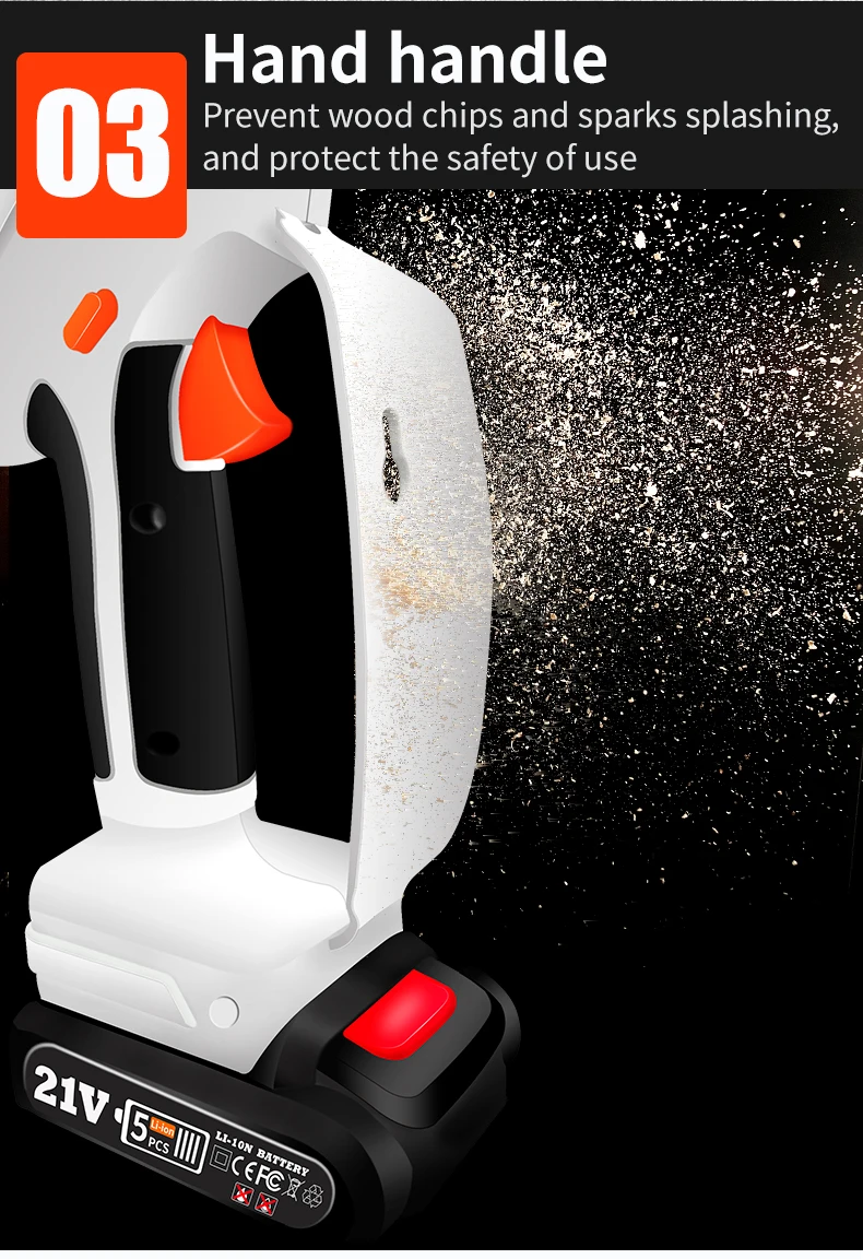 Это своего рода качественная обрезная пила, изготовленная из высококачественного материала, практичная, простая в эксплуатации и использовании, широкий диапазон применения, имеет длительный срок службы. Используется щеточный двигатель, быстрый запуск, своевременное торможение, плавное регулирование скорости в широком диапазоне, относительно простое управление схемой и так далее. Пила была глубокой закалкой при высоких температурах, с заточением пильных Зубцов, более износостойкой, гладкой резкой. Идеально подходит для обрезки, разделки дров, резки дерева и т. д. Вы можете попробовать.Особенности:Беспроводной дизайн, легкий и портативный, удобный для переноски и резки дерева.Используется щеточный двигатель, быстрый запуск, своевременное торможение, плавное регулирование скорости в широком диапазоне, относительно простое управление схемой и так далее.Эргономичный дизайн ручки, одной рукой, долго держать не устанут руки.Высокая эффективность работы, высокая точность позиционирования, низкий уровень шума.5 м/с быстрая скорость резки, практичность, низкое энергопотребление, высокая стабильность и высокая производительность.Длинная направляющая пластина 5 дюймов с защитной конструкцией предотвращает разлетание опилок и мусора.Пила была глубокой закалкой при высоких температурах, с заточением пильных Зубцов, более износостойкой, гладкой резкой.Сфера применения: резка деревьев в садах, обрезка ветвей в муниципальных садах, разделка дров и т. Д.Характеристики:Название: электрическая обрезная пилаМатериал: АБС-пластик + металлАккумулятор: 21 вНоминальное напряжение: 100-230 ВТип направляющей пластины: Тип цепного колесаДлина направляющей пластины: 6 дюймовСкорость цепи: 5 м/сВремя зарядки: 1,5 (3) часовРазмер хоста: 105*95*220 мм/4,13*3,74 * 8.66inРазмер направляющей пластины: 186*34*5 мм/7,32*1,34 * 0.20inРазмер защитной пленки: 93*86*23 мм/3,66*3,39 * дюйма