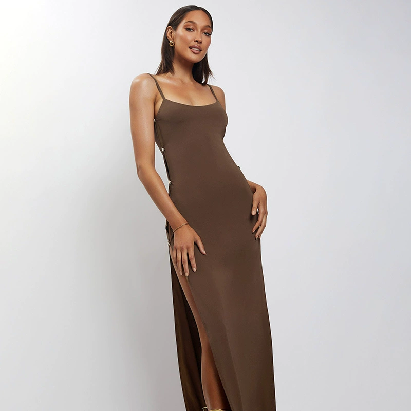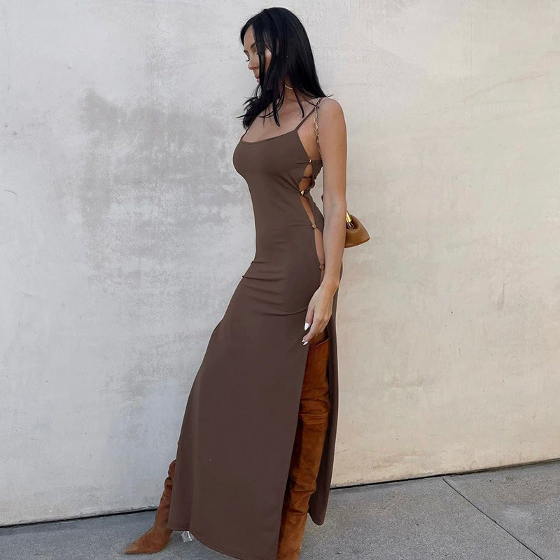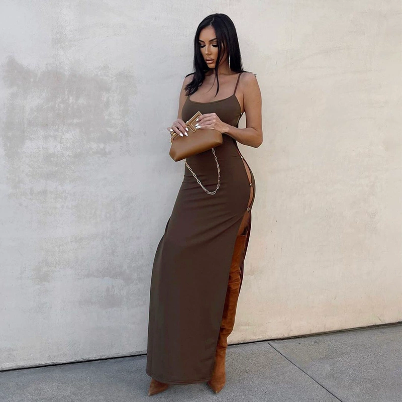 Женское сексуальное платье Hirigin, элегантное женское платье без рукавов с ложным воротником, с высоким разрезом и вырезом на боку, подходит для ночного клуба