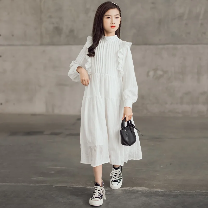 Для девочек 10-12 лет, элегантные вечерние белые длинное платье 2022 Весенняя хлопковая подкладка для девочек-подростков, детское мусульманское платье
