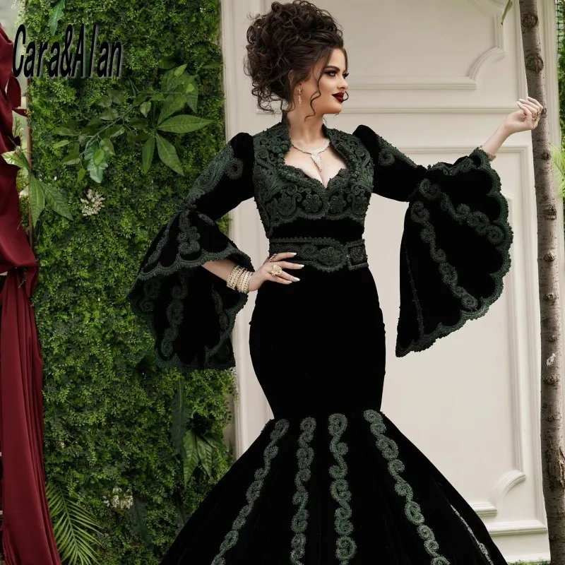 Традиционное вечернее платье-русалка в албанском стиле, черное расклешенное платье с длинными рукавами для выпускного вечера, 2021