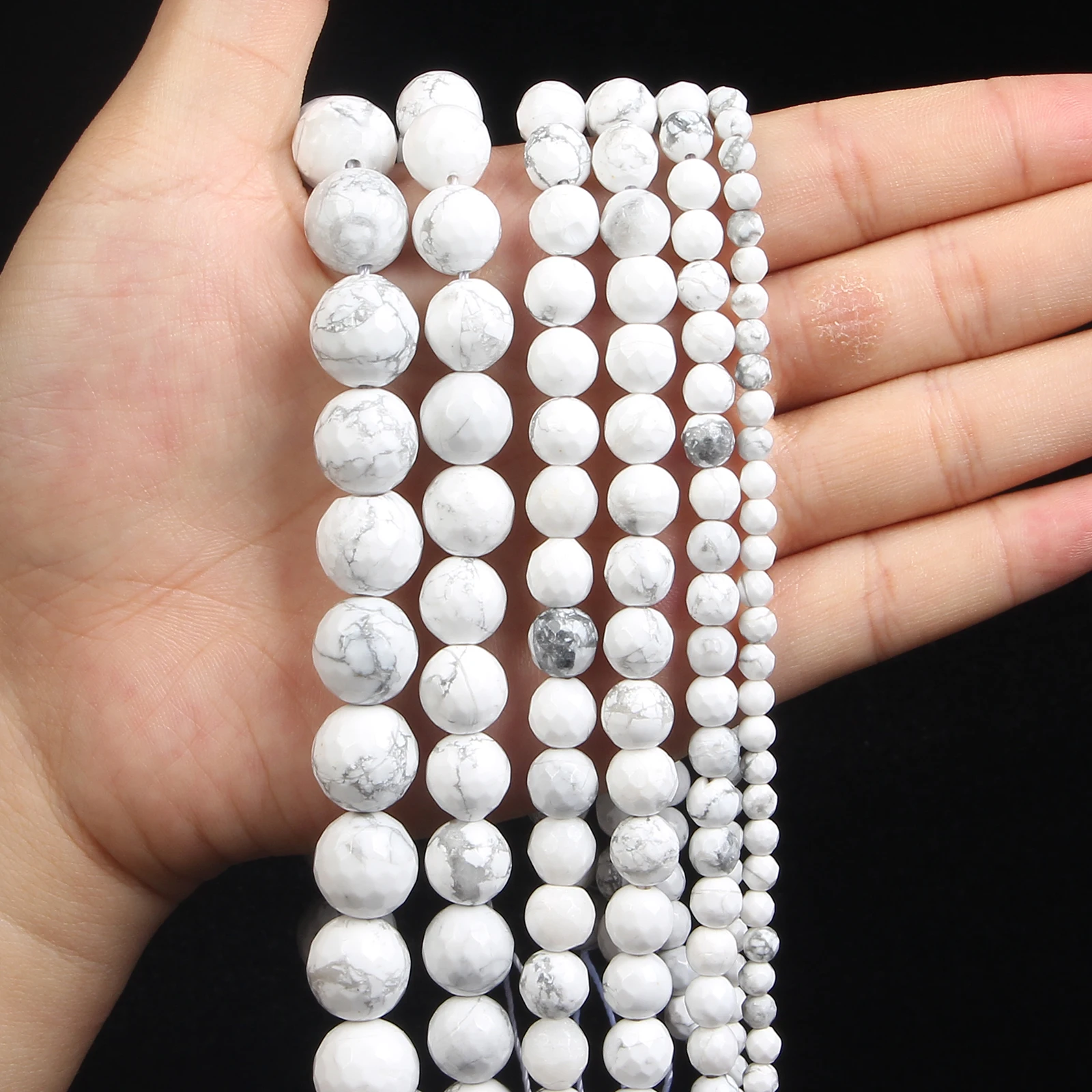 Тип изделия: граненый натуральный Белые бирюзовые каменные бусины