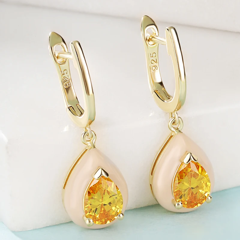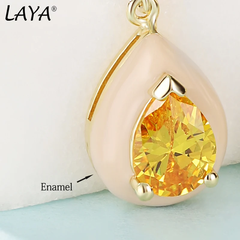 Чистое Серебро 925 пробы, синтетический желтый кристалл, Обнаженная эмаль, модное ювелирное изделие, ручная работа, эмаль, 2021 тренд
