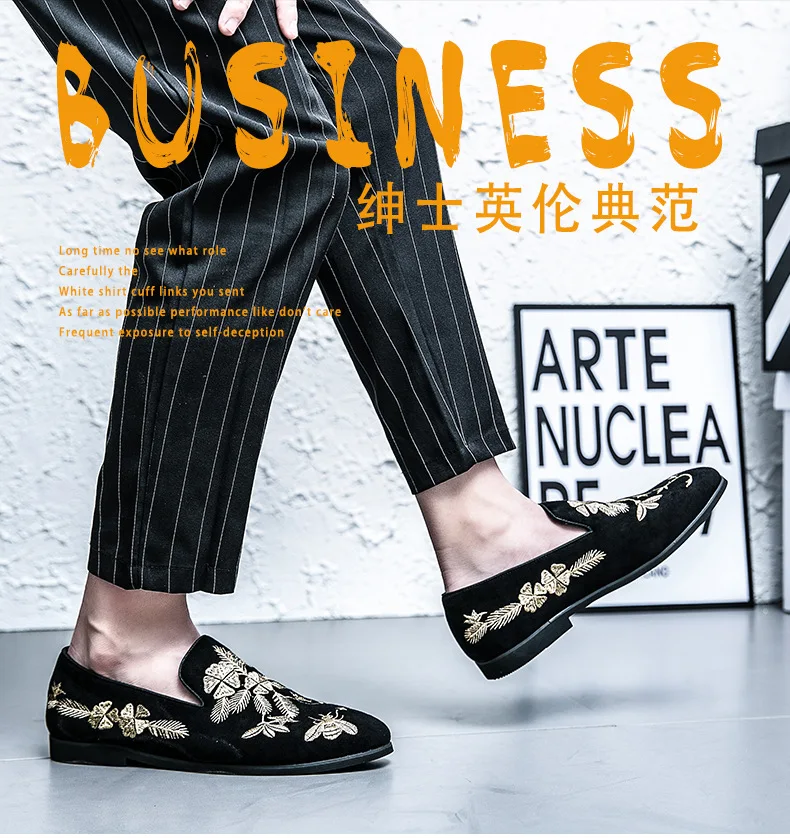 Весенне-осенние мужские бархатные лоферы, туфли для вечерние и свадеб, вельветовые шлепанцы в европейском стиле с вышивкой, мокасины для вождения