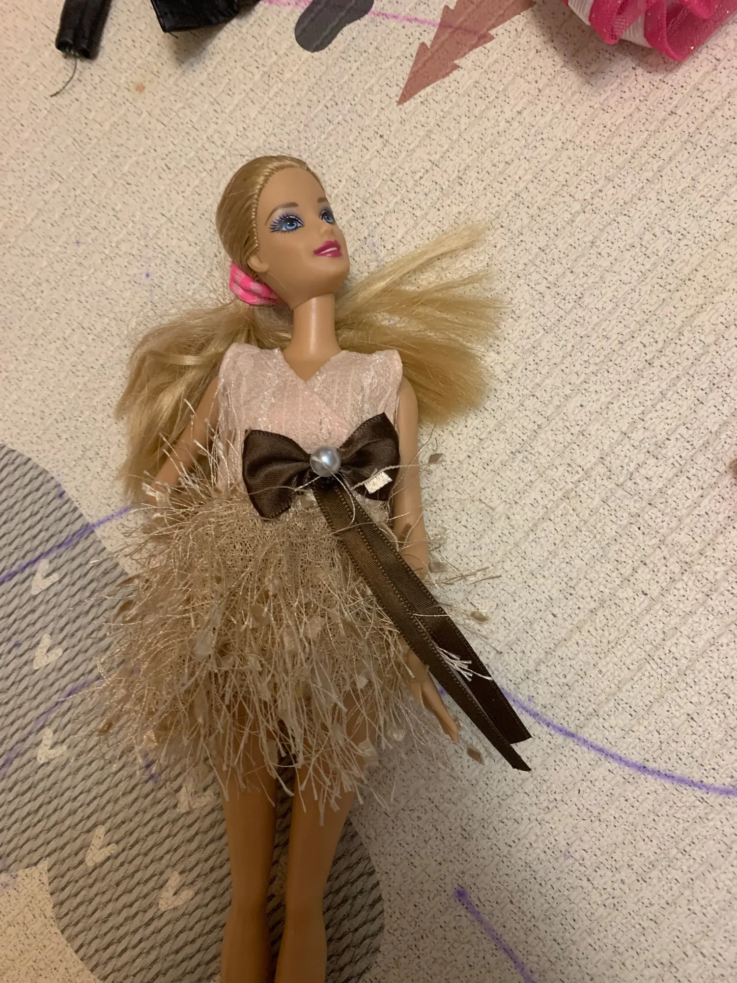 Кукла Барби, 2 шт., матрас, подушка, розово-фиолетовая мебель для с...
