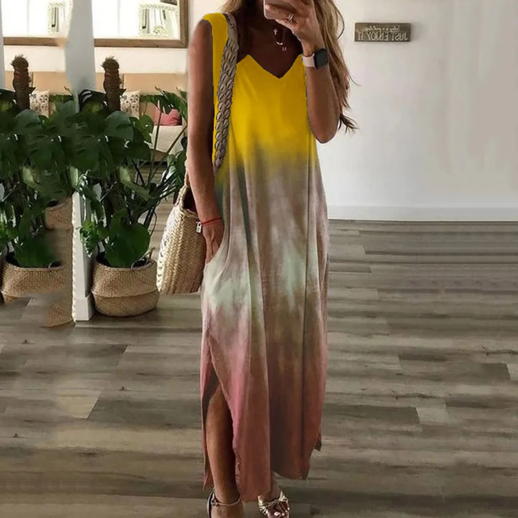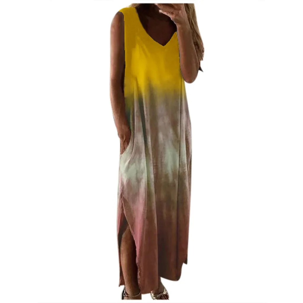 Женское платье-макси с v-образным вырезом Tie-dye traf, Повседневное платье без рукавов с карманом для лета, 2021