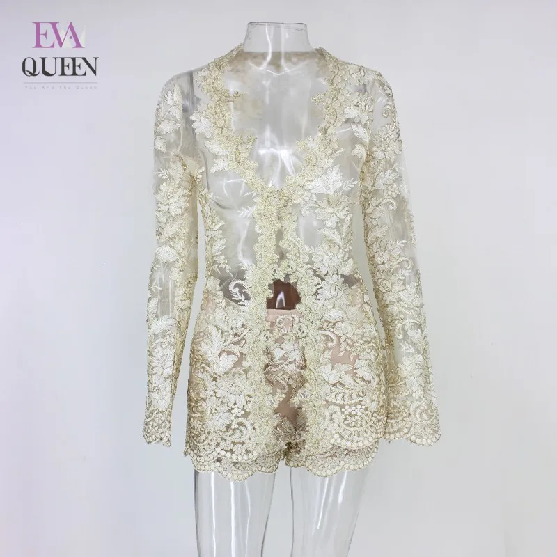 Женский кружевной комплект EvaQueen из 2 предметов, комплект с глубоким V-образным вырезом и шортами с высокой талией на молнии