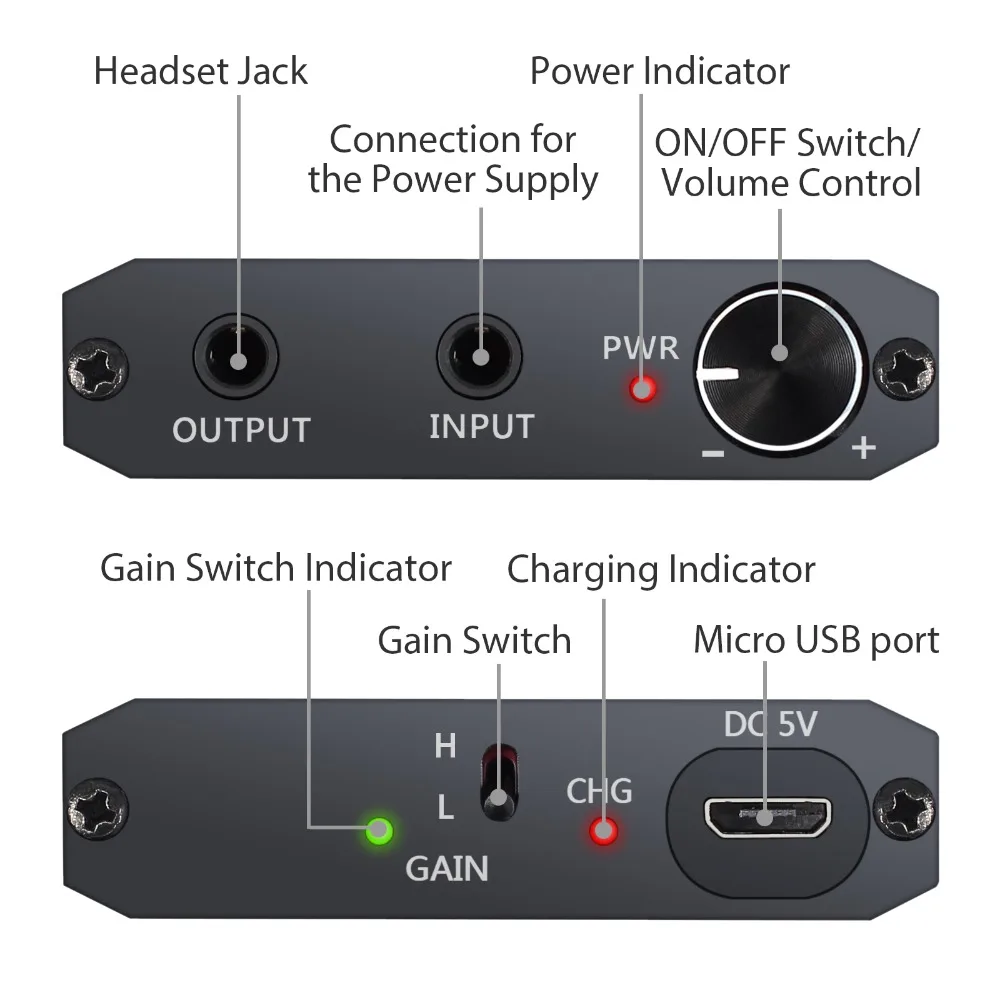 3. Двухступенчатый Переключатель усиления усиливает вход сигнала в цепь усилителя для оптимальной производительности наушников