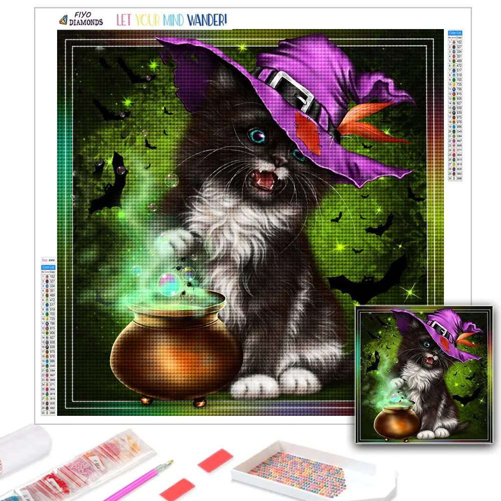 Квадратныекруглые камни FIYO, Алмазная мозаика, ведьма, полная Алма...