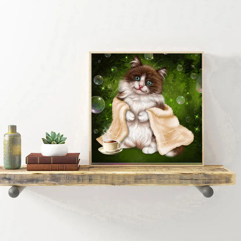 【 Площадь сверла 】: Полностью квадратная/круглая бриллиантовая мозаичная фигурка животного кота