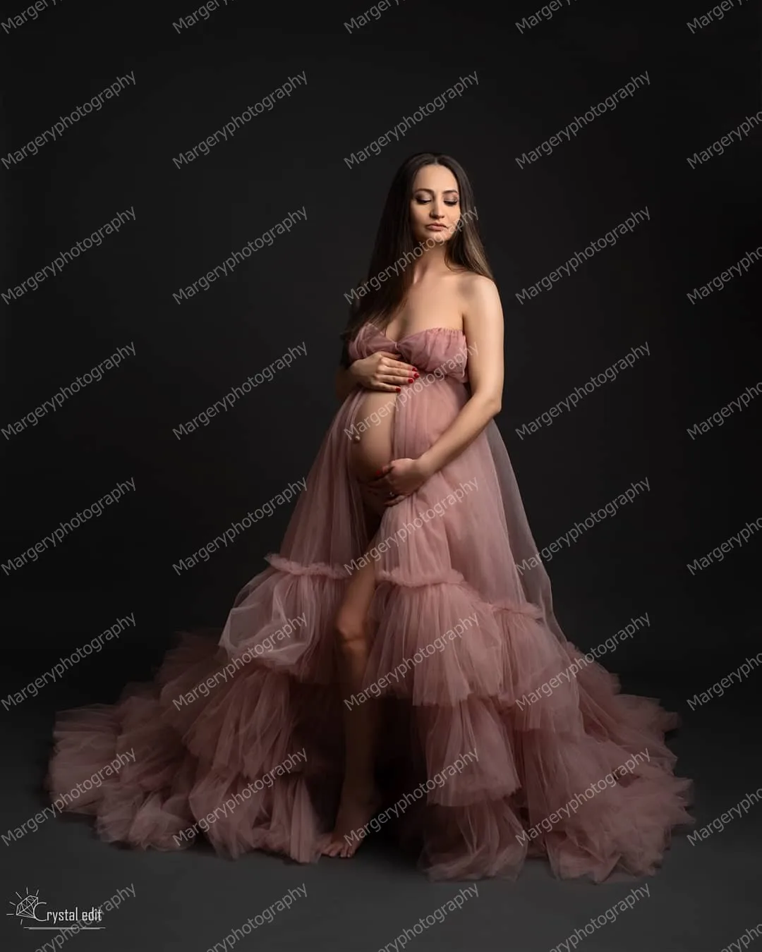 Розовые сетчатые платья для беременных Dreamlike без бретелек с оборками многоярусные тюлевые платья для беременных для фотосъемки на заказ