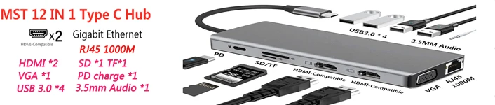 Thunderbolt 3 адаптер USB Type C Hub HDMI-совместимый 4K Поддержка ...