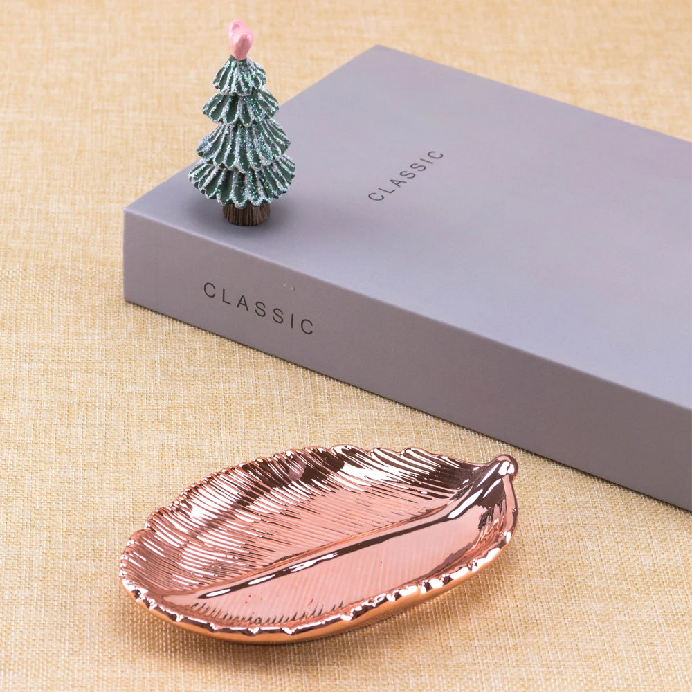Имя:Глоден керамический тарелка с листьями Дерево лист ювелирные изделия закуски десерт серебряный поднос для хранения розовое золото керамика s ювелирные изделия эмаль брелок блюдо