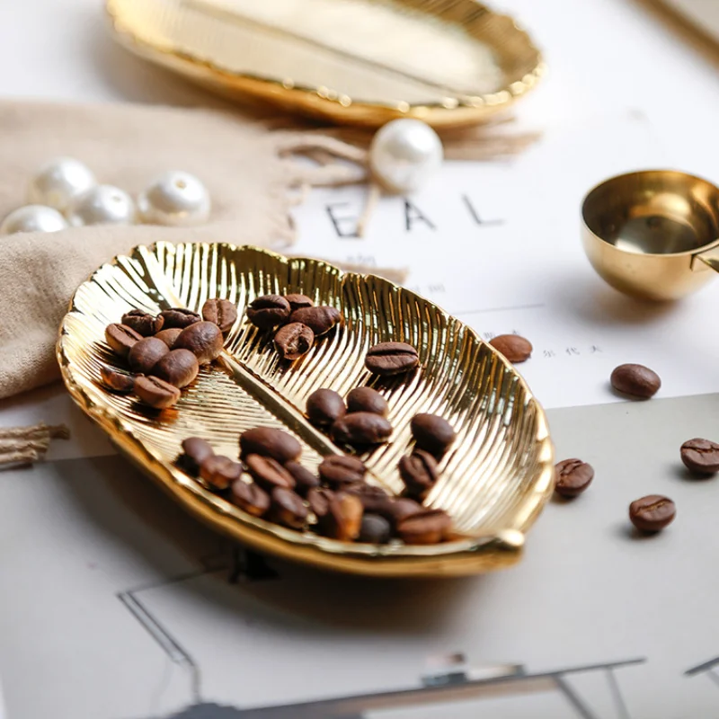 Лоток Gloden, керамический, тарелка с листьями, с изображением листьев дерева, для хранения десертов, серебра, цвета розового золота
