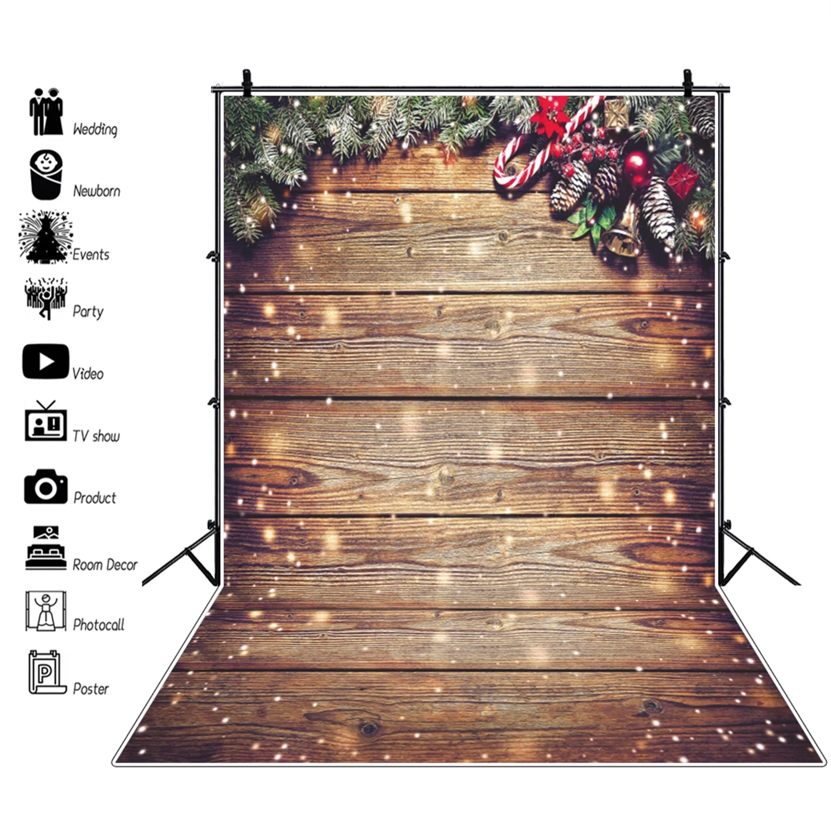 Фон для фотосъемки детей Yeele в рождественском стиле с изображением деревянной доски цветы с блестками
