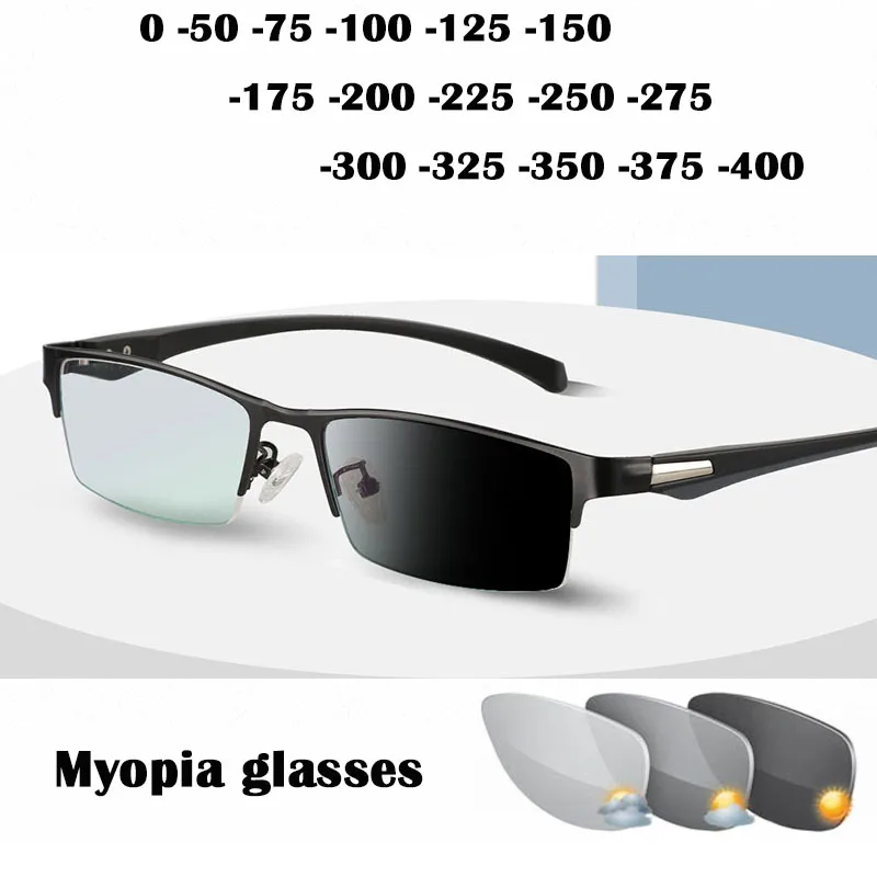 Мужские очки для близорукости новые фотохромные гибкие очки для близорукости высокое качество ультралегкие плоские зеркальные черные полуобода 0 -50 -75