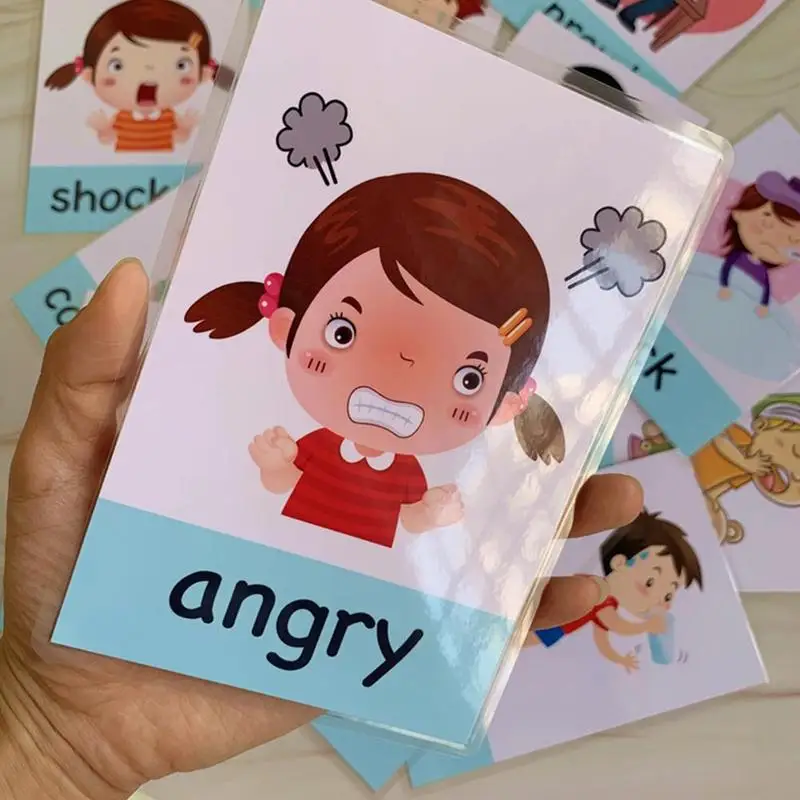 Флеш-карта по методике Монтессори с английским языком, Обучающие эмоции, карточки настроения для детей, для раннего обучения аутистов, для детей, X2X7