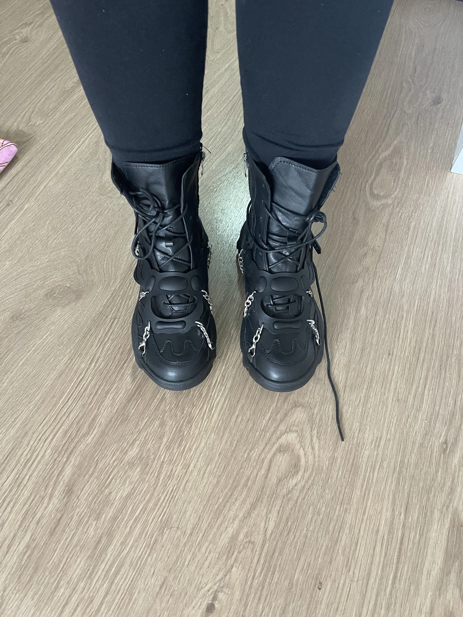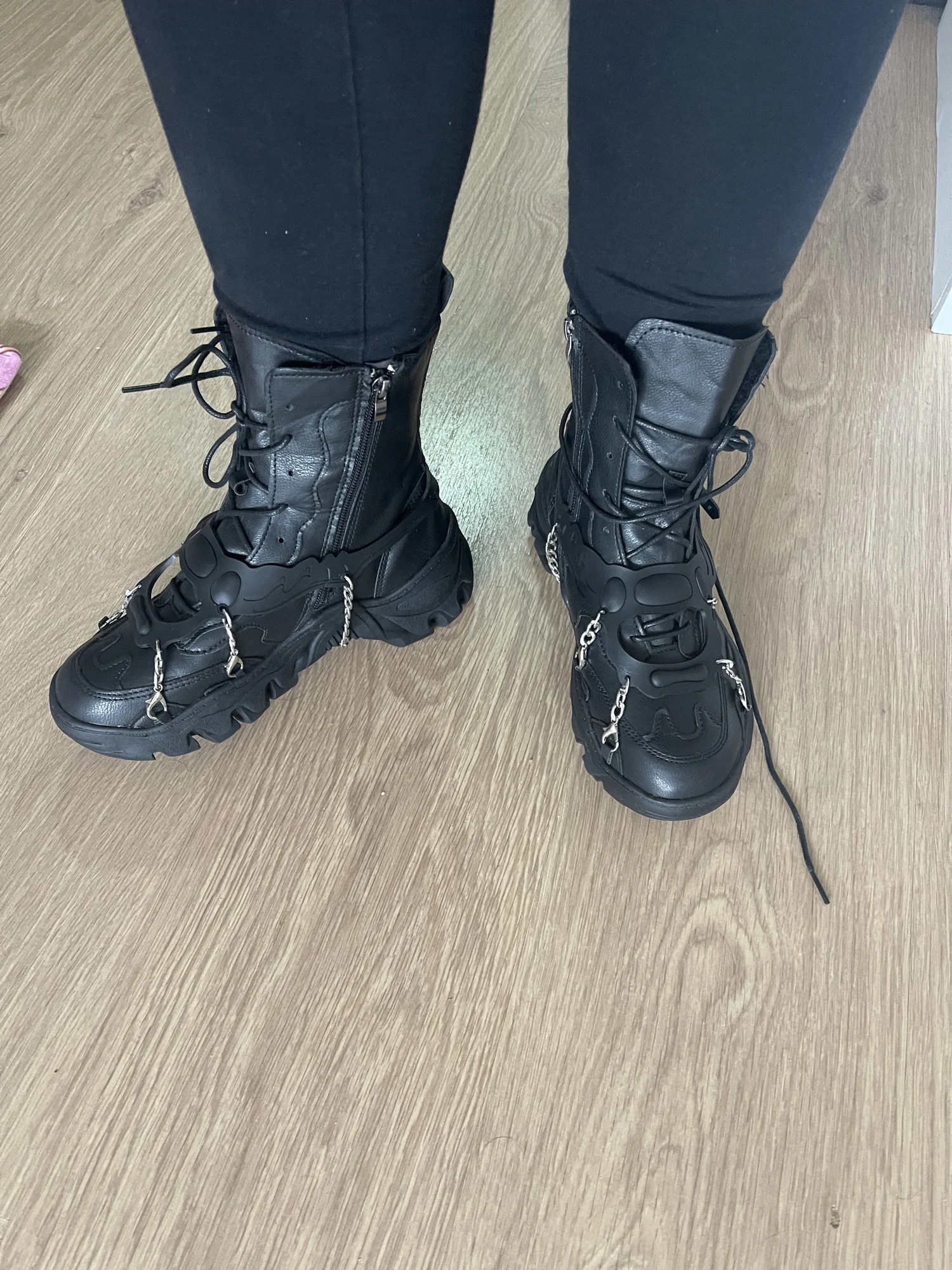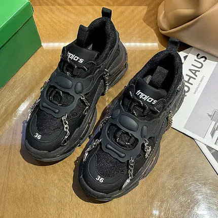 Ботинки женские, черные, на платформе, с металлическими пуговицами