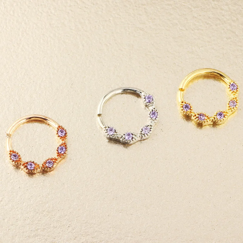 Кольцо для пирсинга носа с фианитами, Ювелирное Украшение для тела, кольцо для носа с маленькими цветами, бриллиант на Козелок, 1 шт.