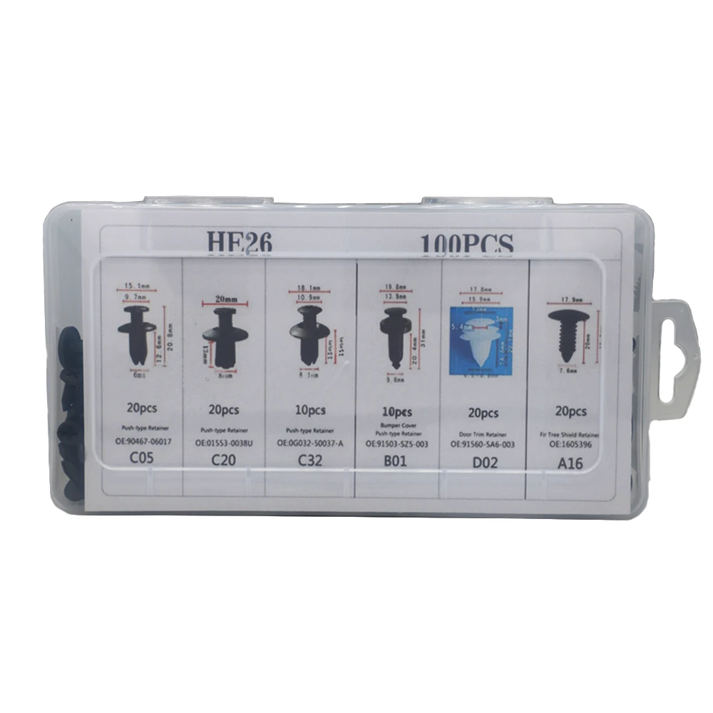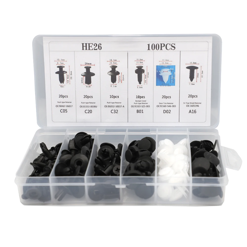 Универсальные зажимы для автомобильного бампера, 6 размеров, 100 шт.