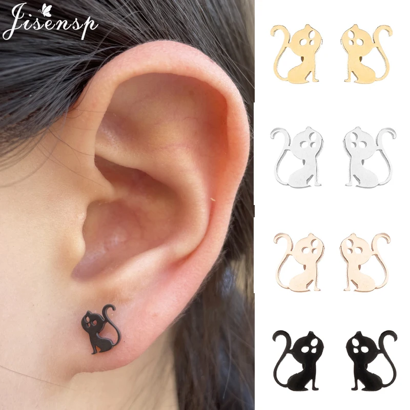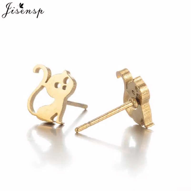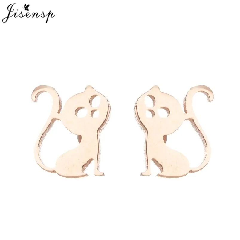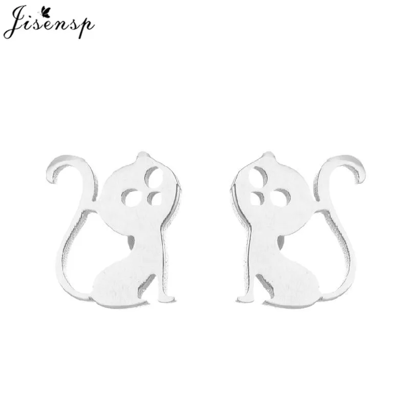 Корейские минималистичные серьги из нержавеющей стали для женщин, серьги-гвоздики в виде котят, собачьих лап, животных, модные украшения, подарок для детей