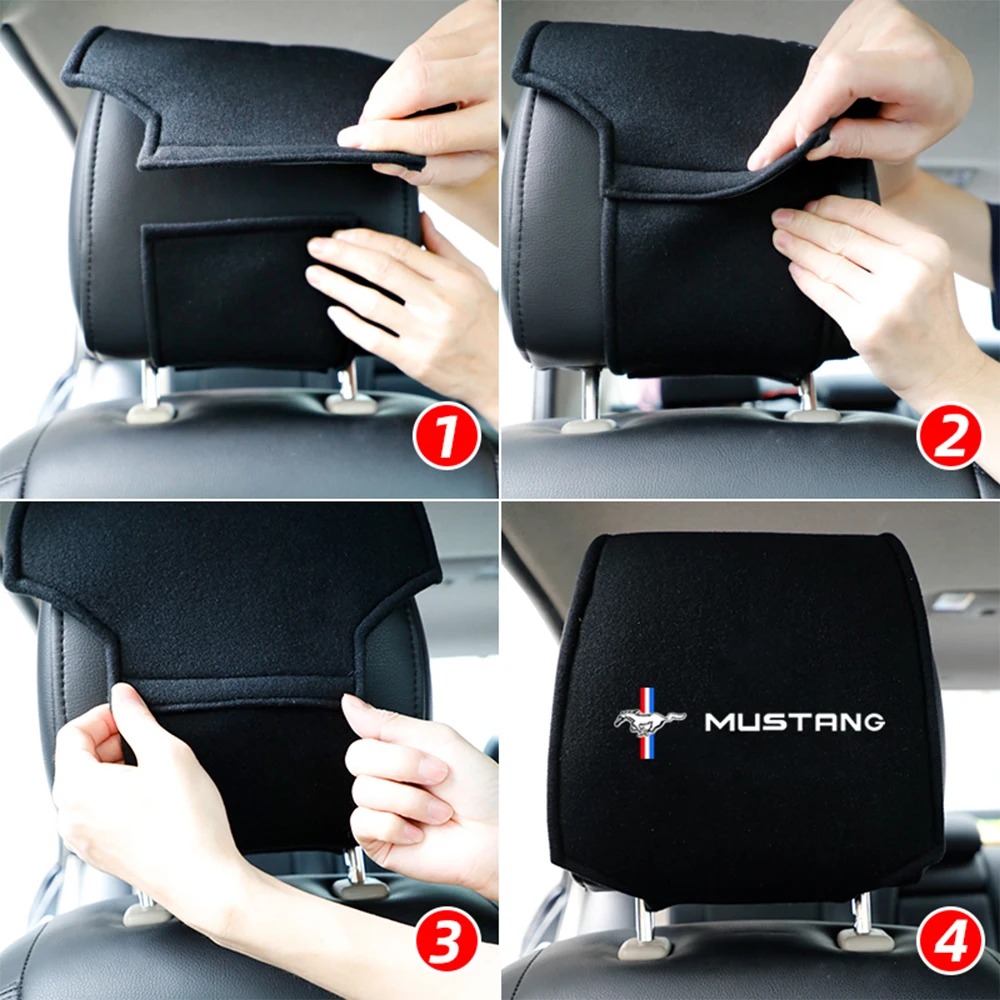 Автомобильный чехол для подголовника автомобиля, 2 шт., чехол для автомобиля Mustang, чехол для сиденья автомобиля на липучке, чехол для подушки автомобиля, аксессуары для значка автомобиля