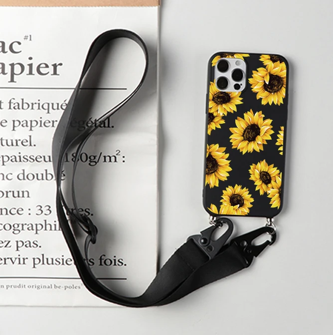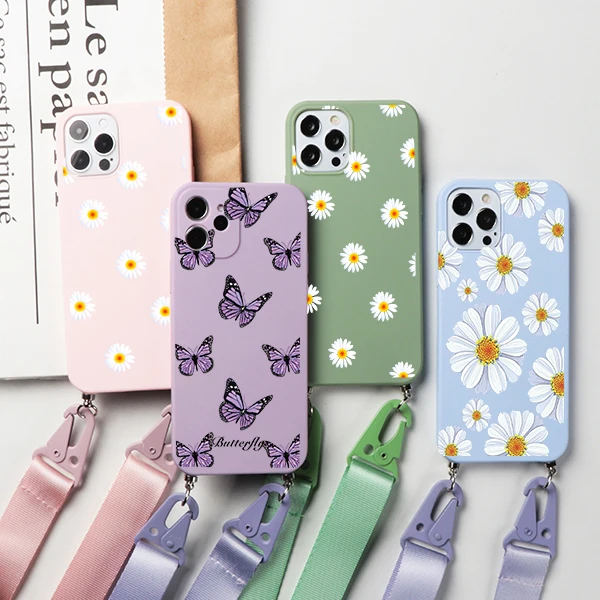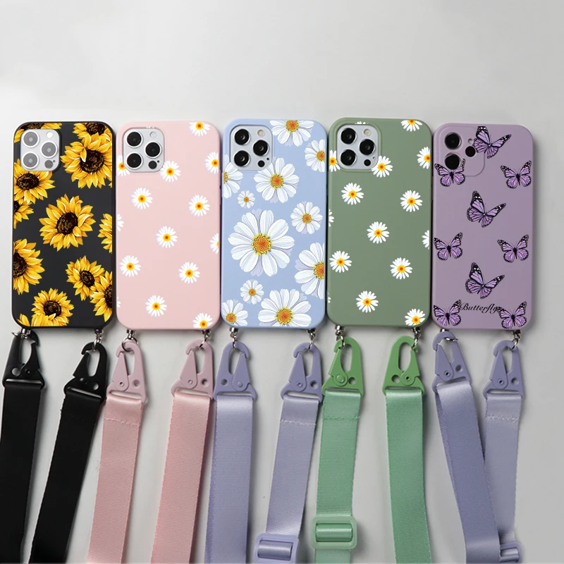 Чехол с ремешком на шею и цветами для iPhone 12 Mini 11 Pro Max X XR XS Max 7 8 6 6s Plus 5 5S SE, мягкий чехол-бампер