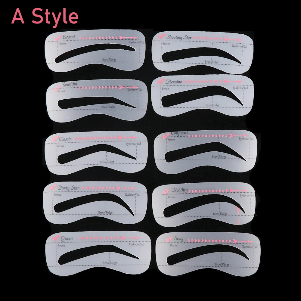 3/10 видов стилей, Женский трафарет для бровей, набор шаблонов для ухода за бровями, инструменты для макияжа, наклейки для бровей, карточка для бровей, косметический инструмент