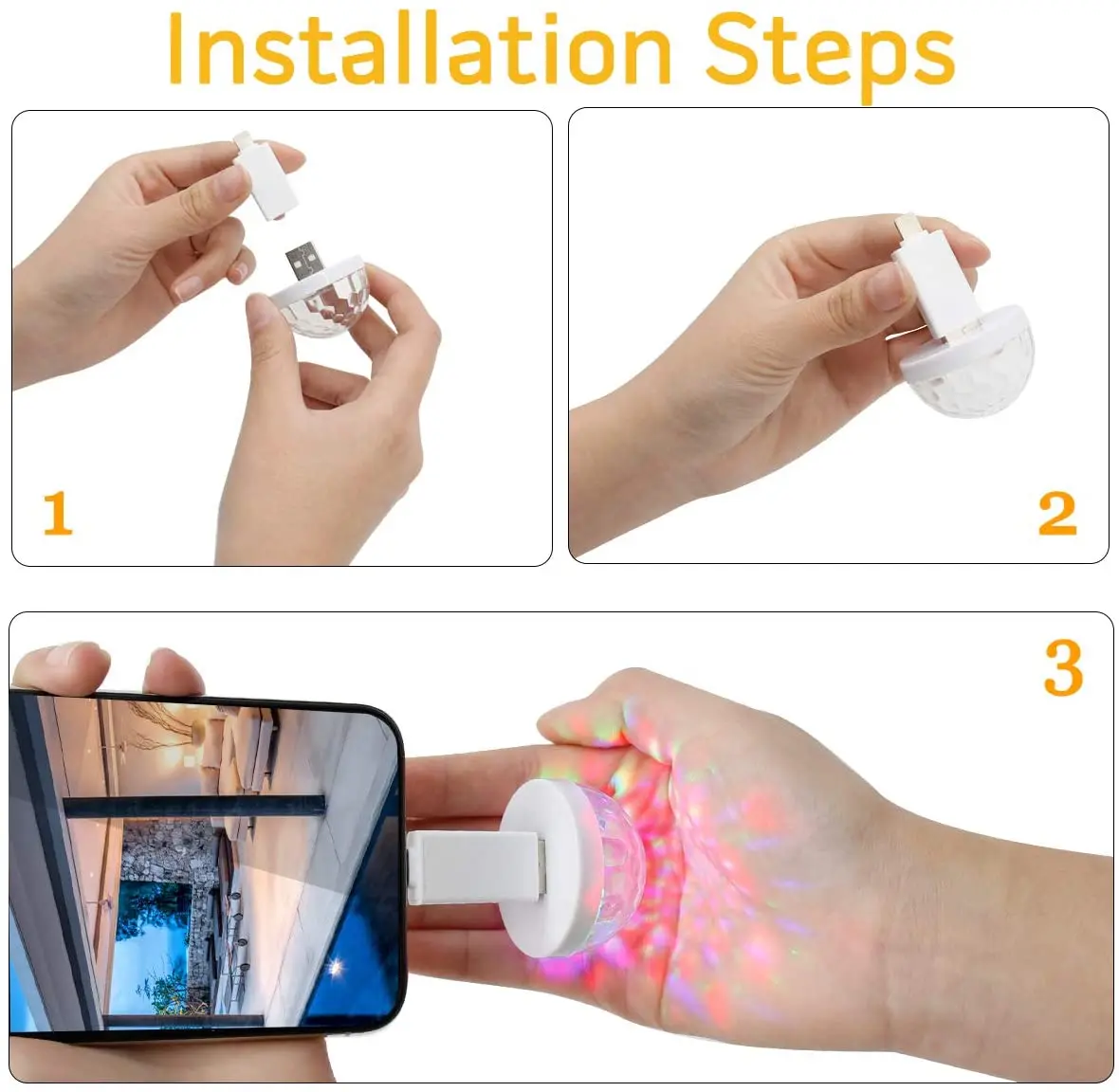 Подходит для украшения автомобиля, дискотеки, бальных танцев, КТВ, бара, сцены, клуба, вечерние, оборудования с интерфейсом USB и т. д.